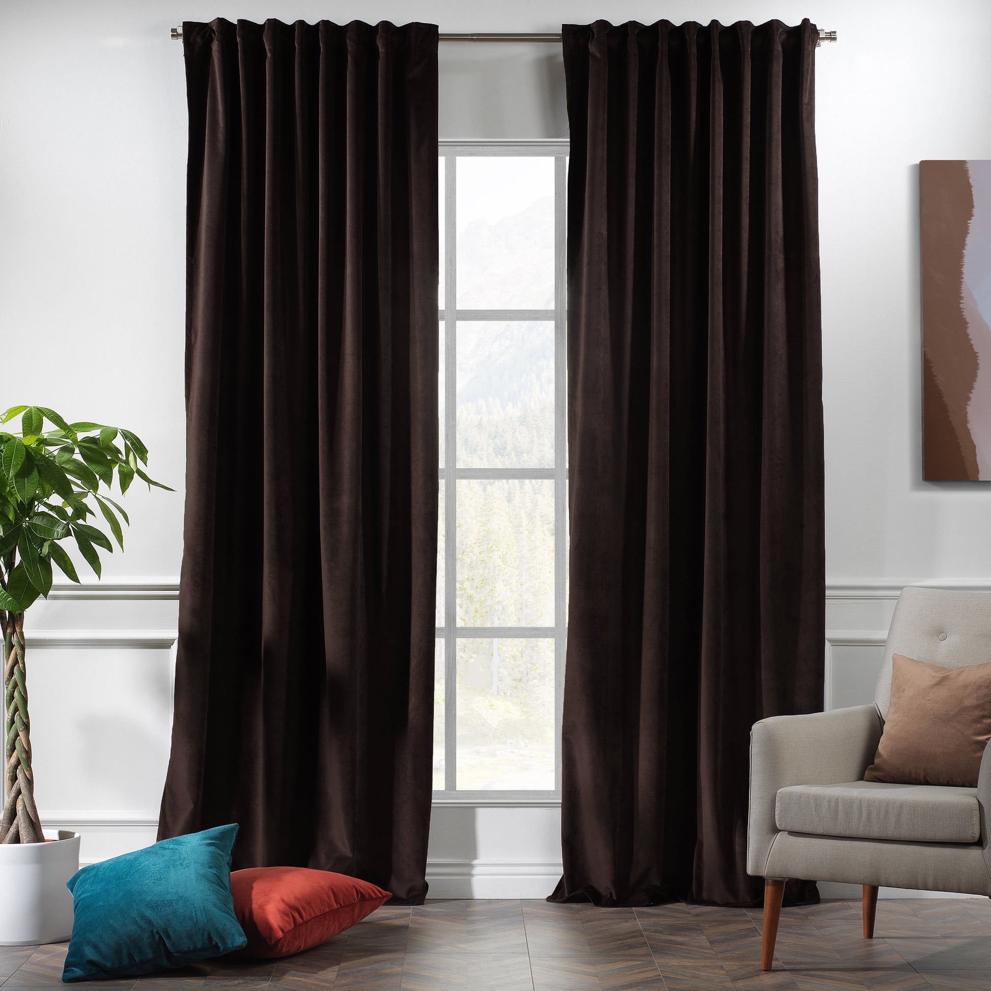 ??RICH MATERIAL: These curtains are made of superior quality 100% polyester velvet fabric, primitive and natural effect make the curtains more durable and long lasting, no any chemical adding. Sold per pair (set) including 2 panels for a window - panel measures in inches.