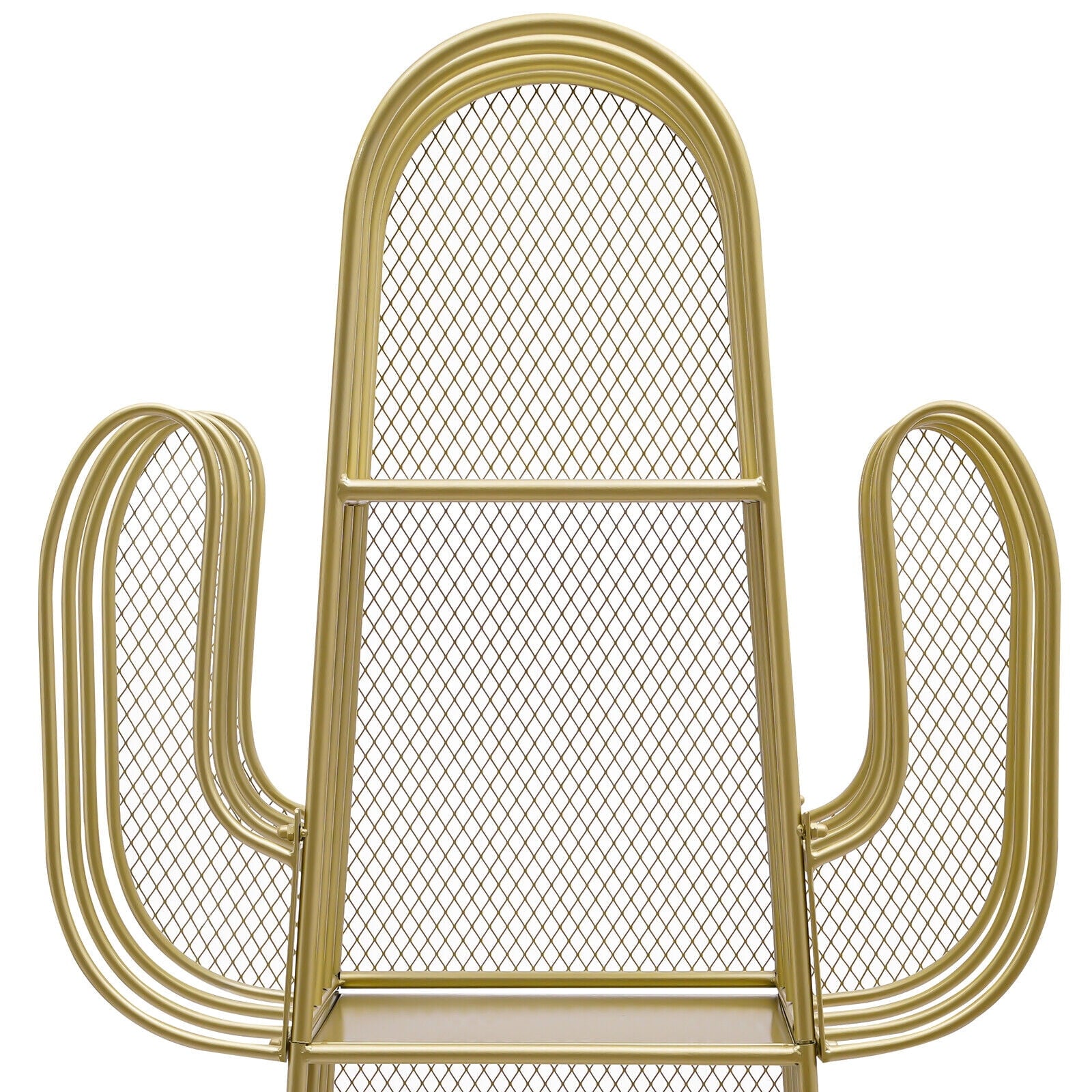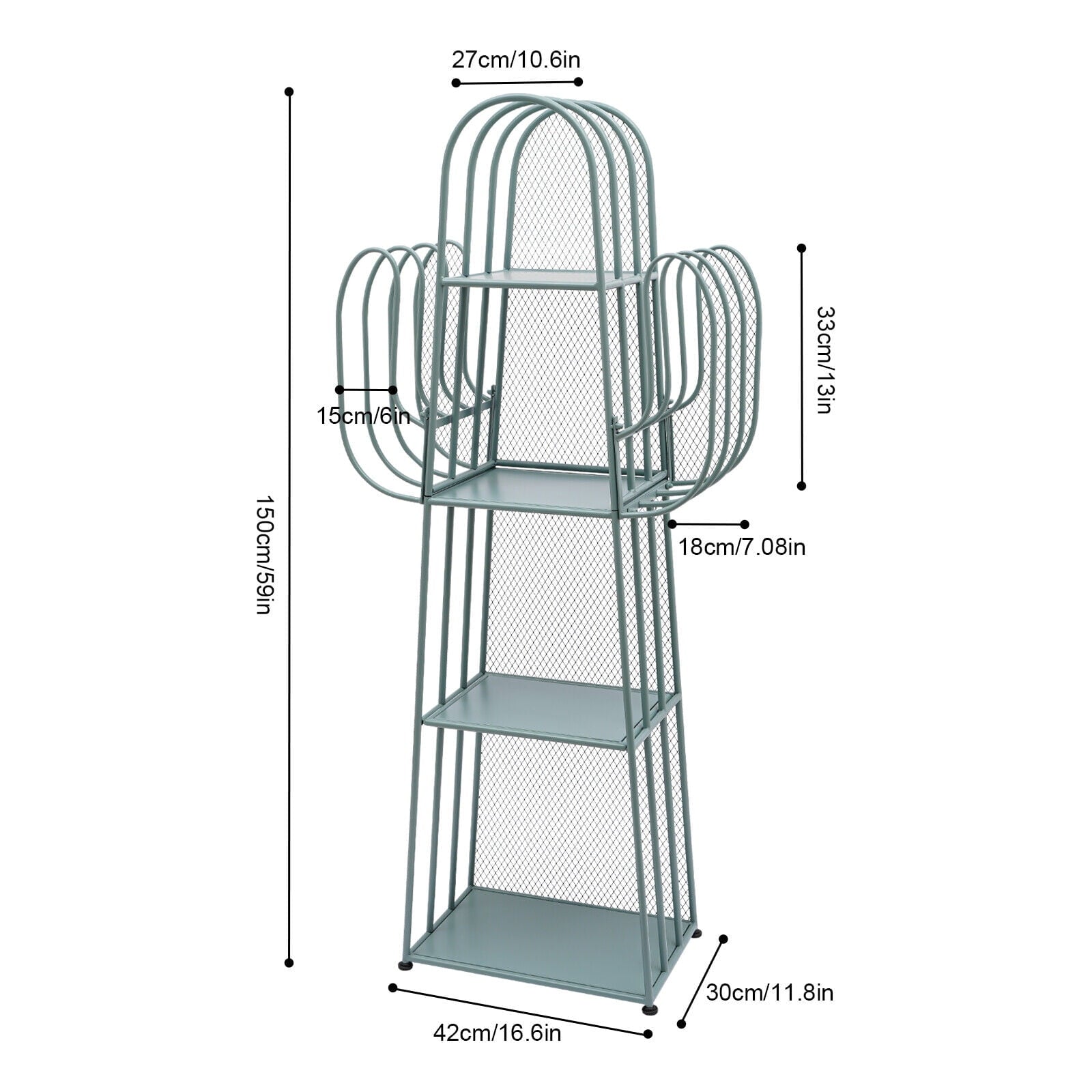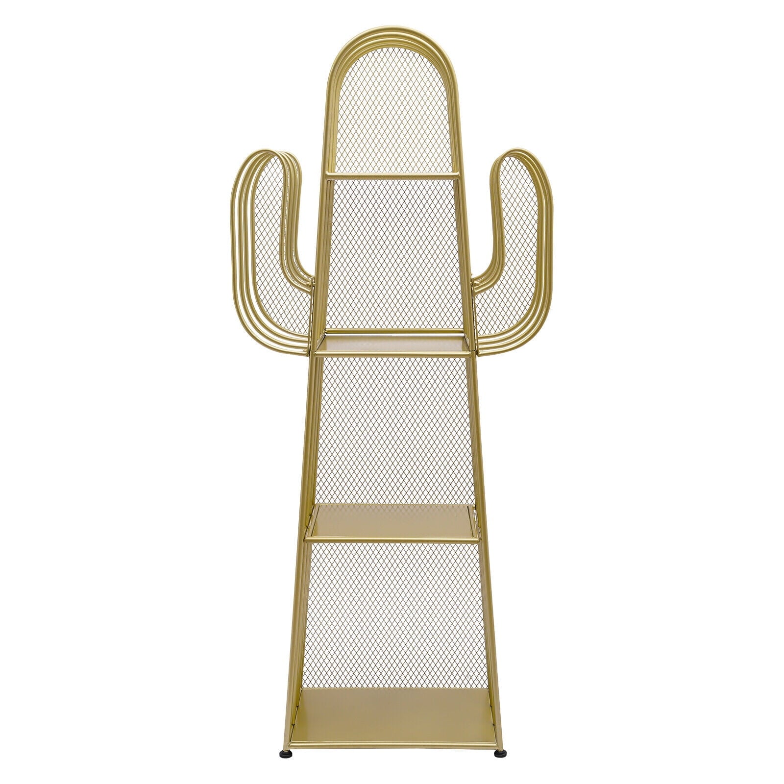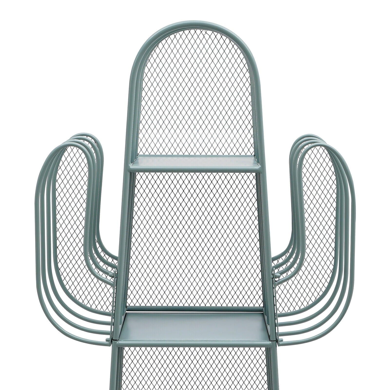 4 Tier Cactus Shape Bookcase, Iron Bookshelf Storage Rack Shelf, Living Room Sundry Shelf, Flower Stand with 8 Hooks, Bedroom Bookshelf for Kids & Adults