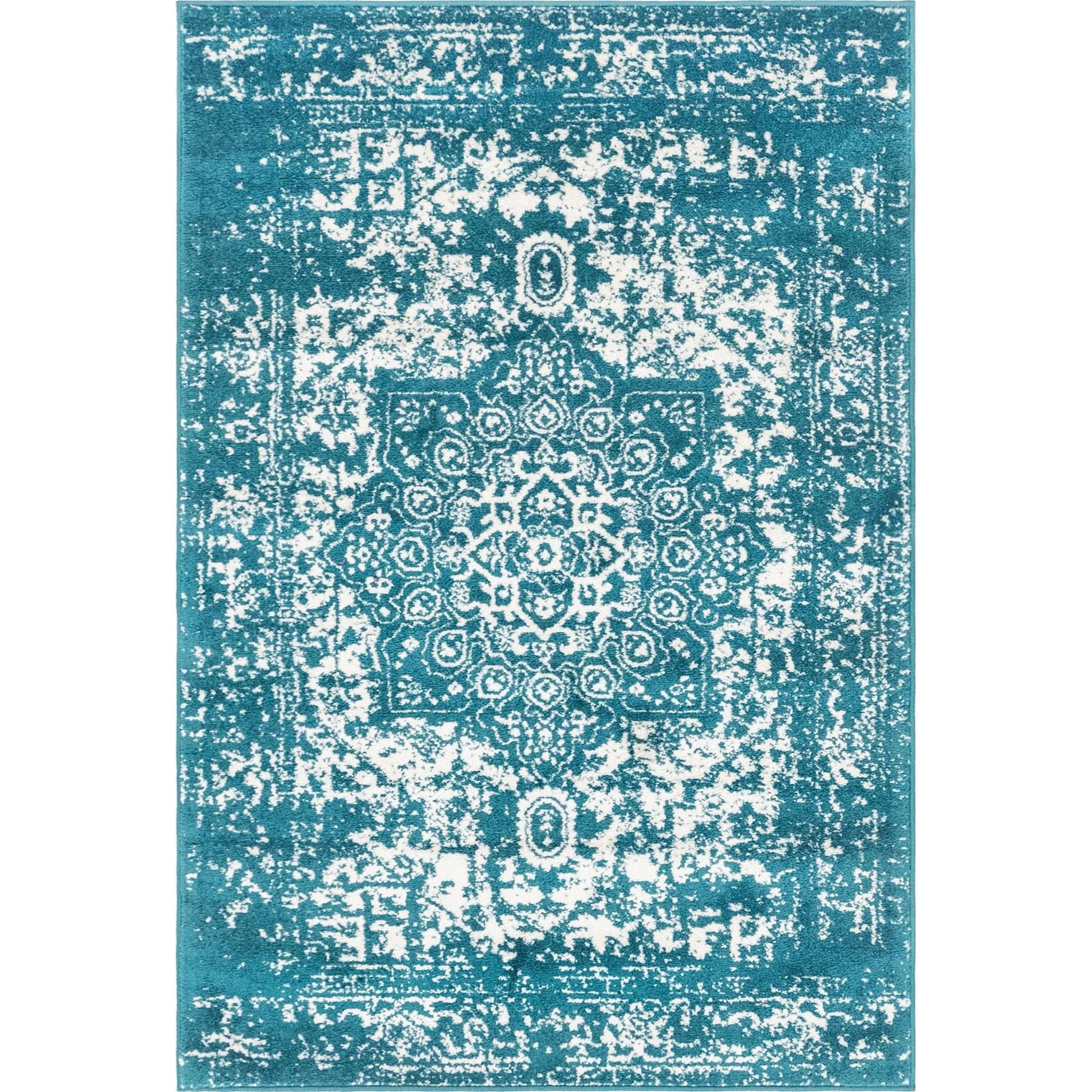 From the Richmond Collection, this rug emanates calming vibes with its appealing light tones. Simple in design, the light-hued base will make any setup feel breezy and fresh. Unfussy and stain-resistant, the piece is easy to clean and will stand the test of time. Ideal for modern homes, this rug will leave quite the impression!. Product Features: Color(s): turquoise blue and ivory. Machine made. Medium pile. Backing: yes. Easy to clean, stain resistant and does not shed. Recommended for indoor use only. Use rug pad to reduce slipping and sliding. Rug pad sold separately. Made in Turkey. Care instructions: Spot clean only. Regular vacuuming. Use a carpet cleaner but it should be dried immediately and evenly. In case of creases - roll the rug in the opposite direction, while applying pressure to the rug - take the edge, flip it where there is a crease, and slowly pull the rug back, while applying downward pressure on the crease. Dimensions: 4' wide x 6' long. Pile height: 0.5". Material(s): polypropylene . Backing: cotton
