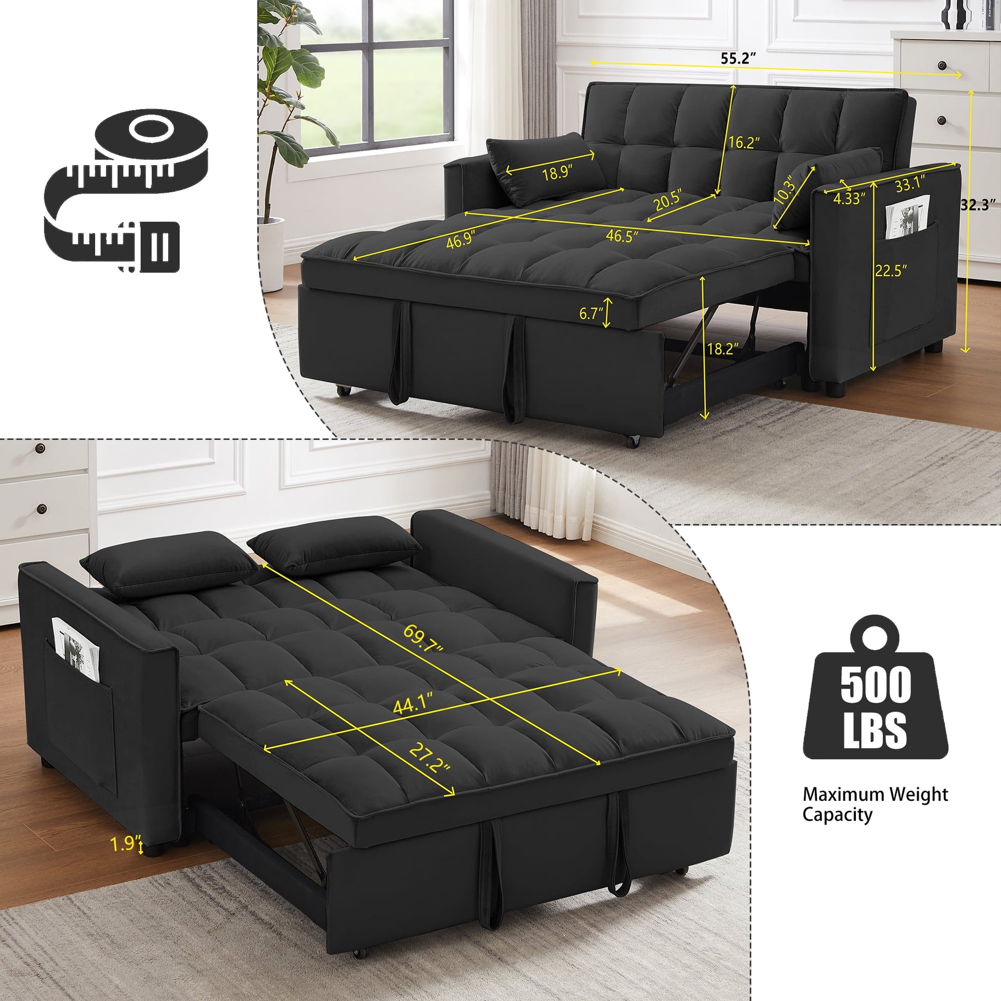 - ¡ïCONVERTIBLE SOFA BED -- Pull the included handle and it slides out on its rollers to make loveseat sofa converts to sleeper bed easily, No matter what room it is, whether it is a large room or a small room, this is your best choice! The twin-sized sleeper bed can accommodate your overnight guests.