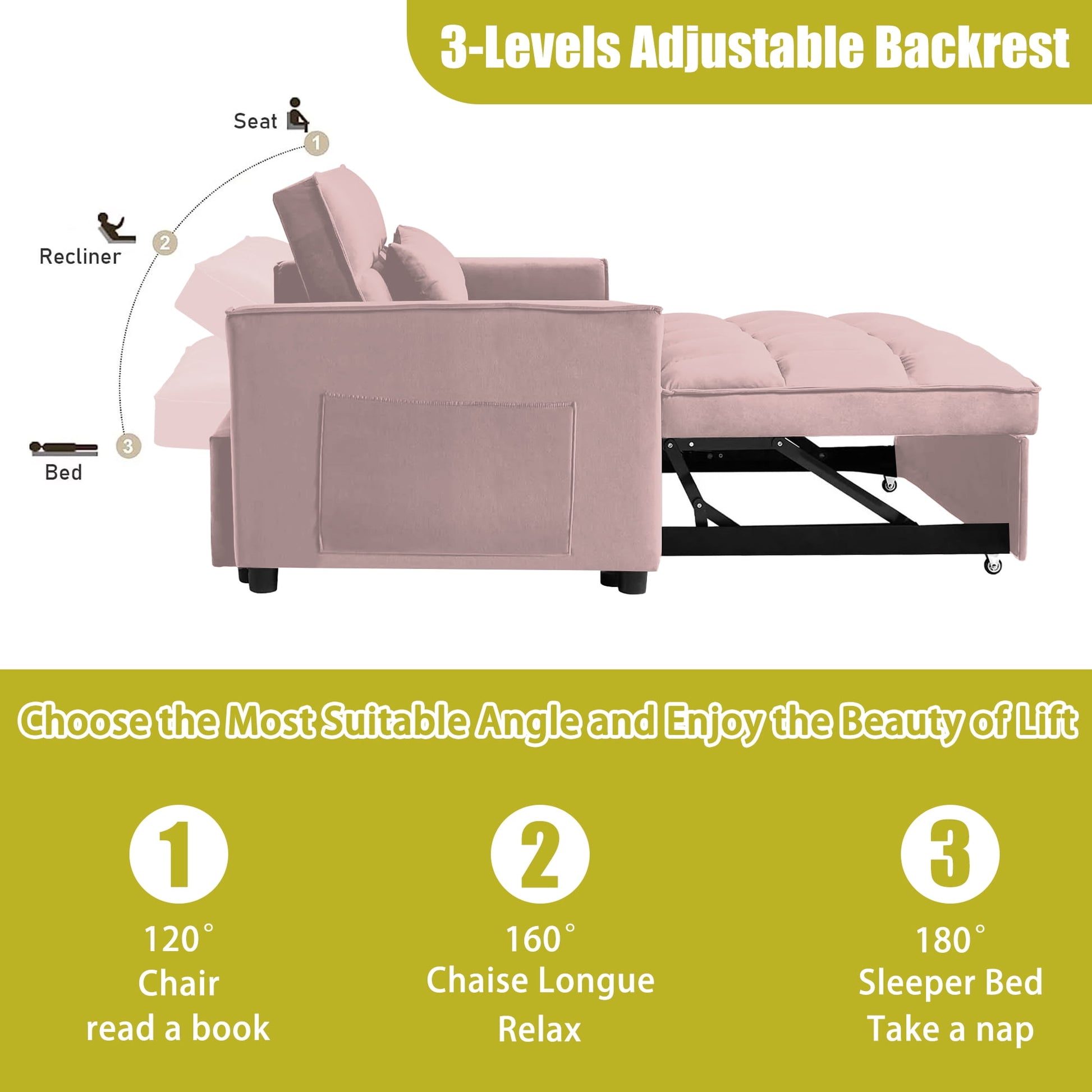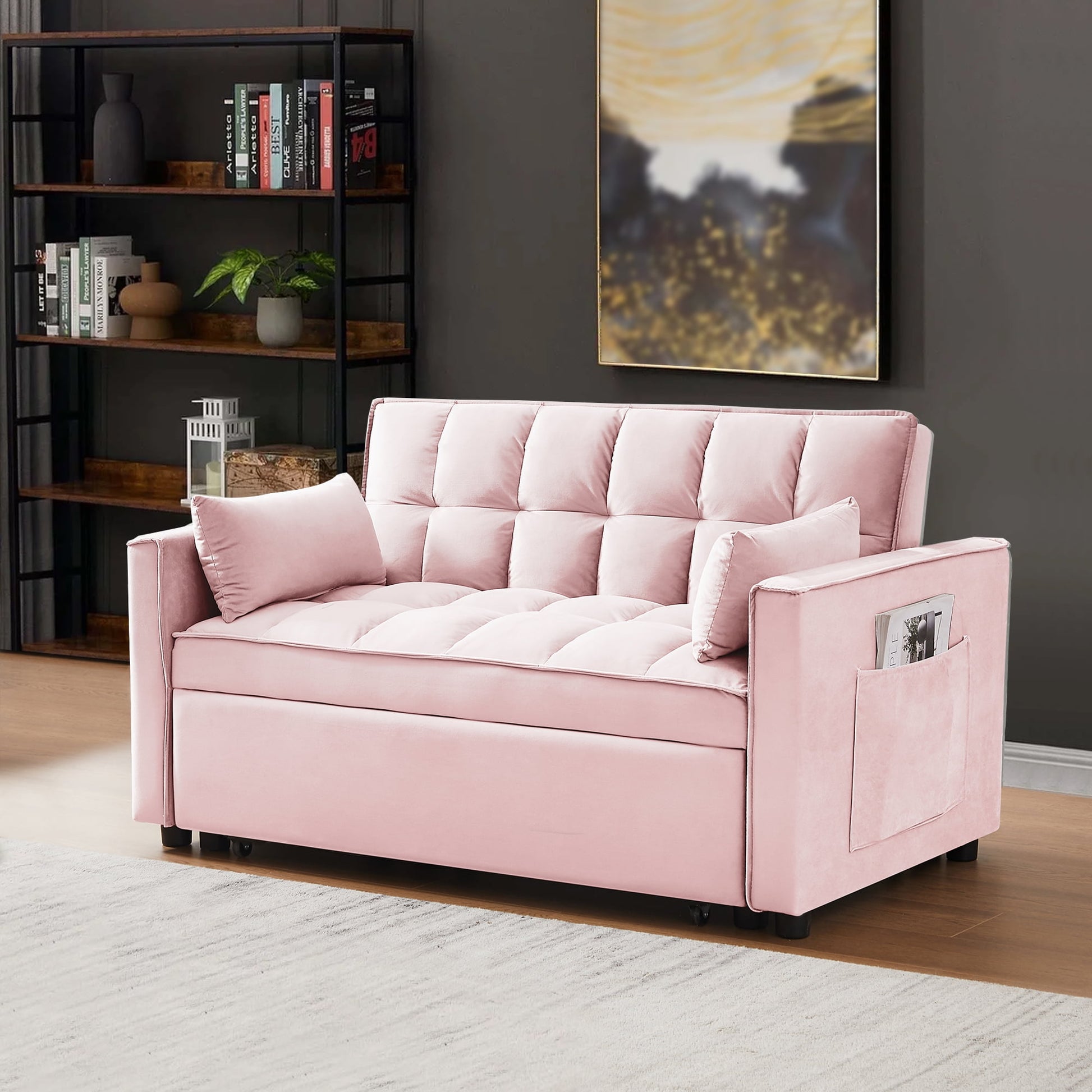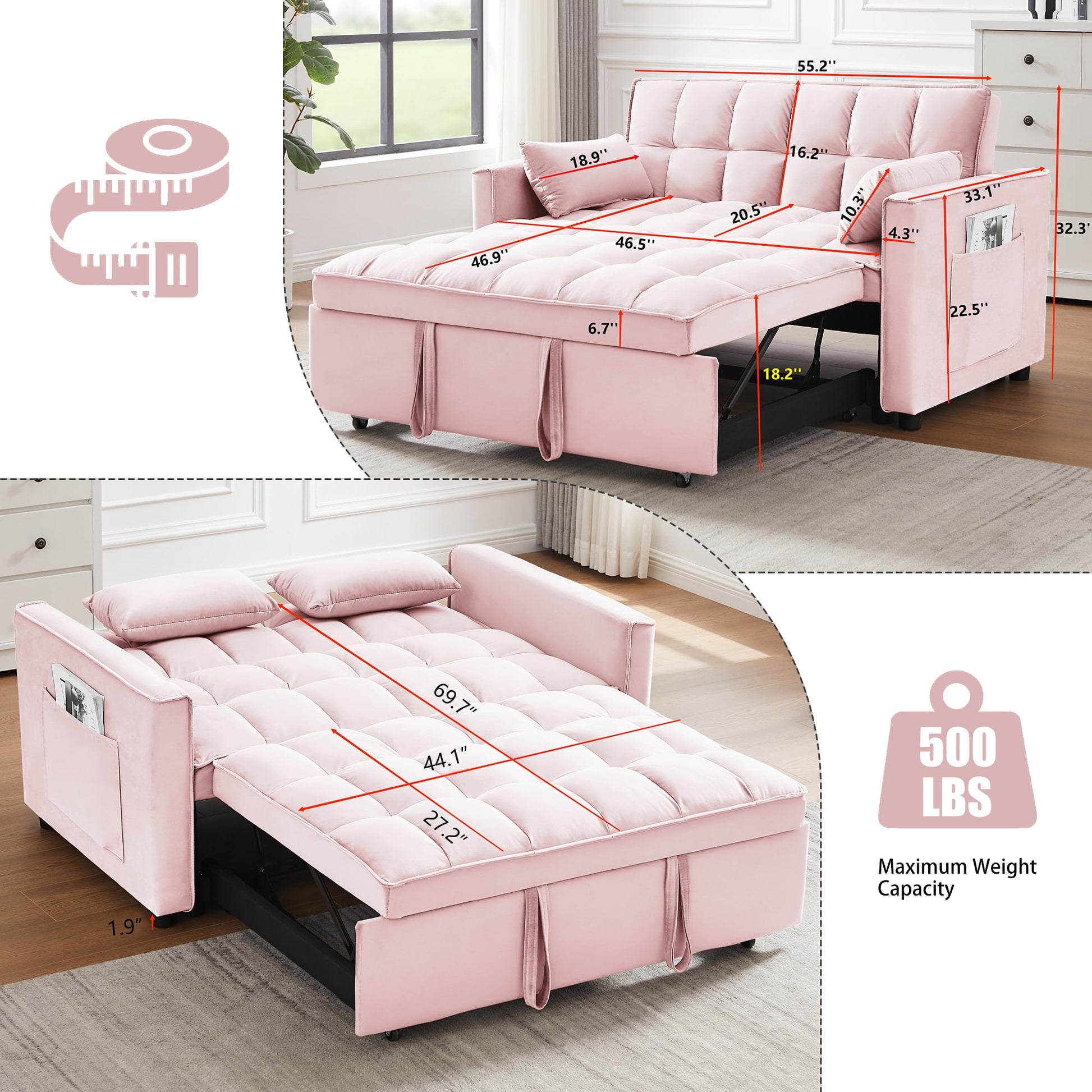 55 Inch Convertible Futon Sofa Bed,Modern Loveseat Sleeper Sofa Couch with Pull-Out Sofa Bed for Living Room,Small Space - Pink