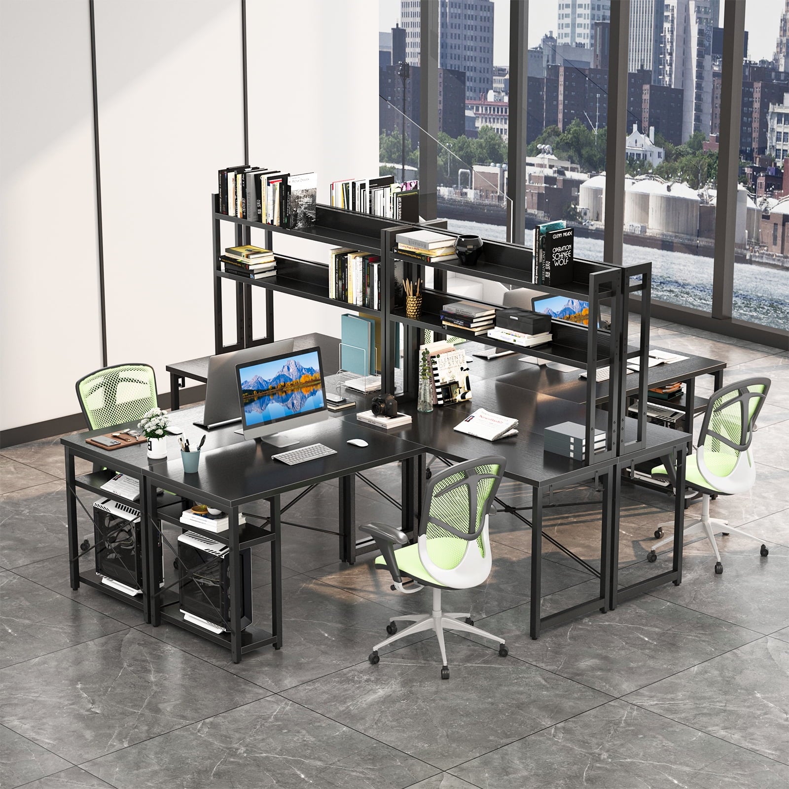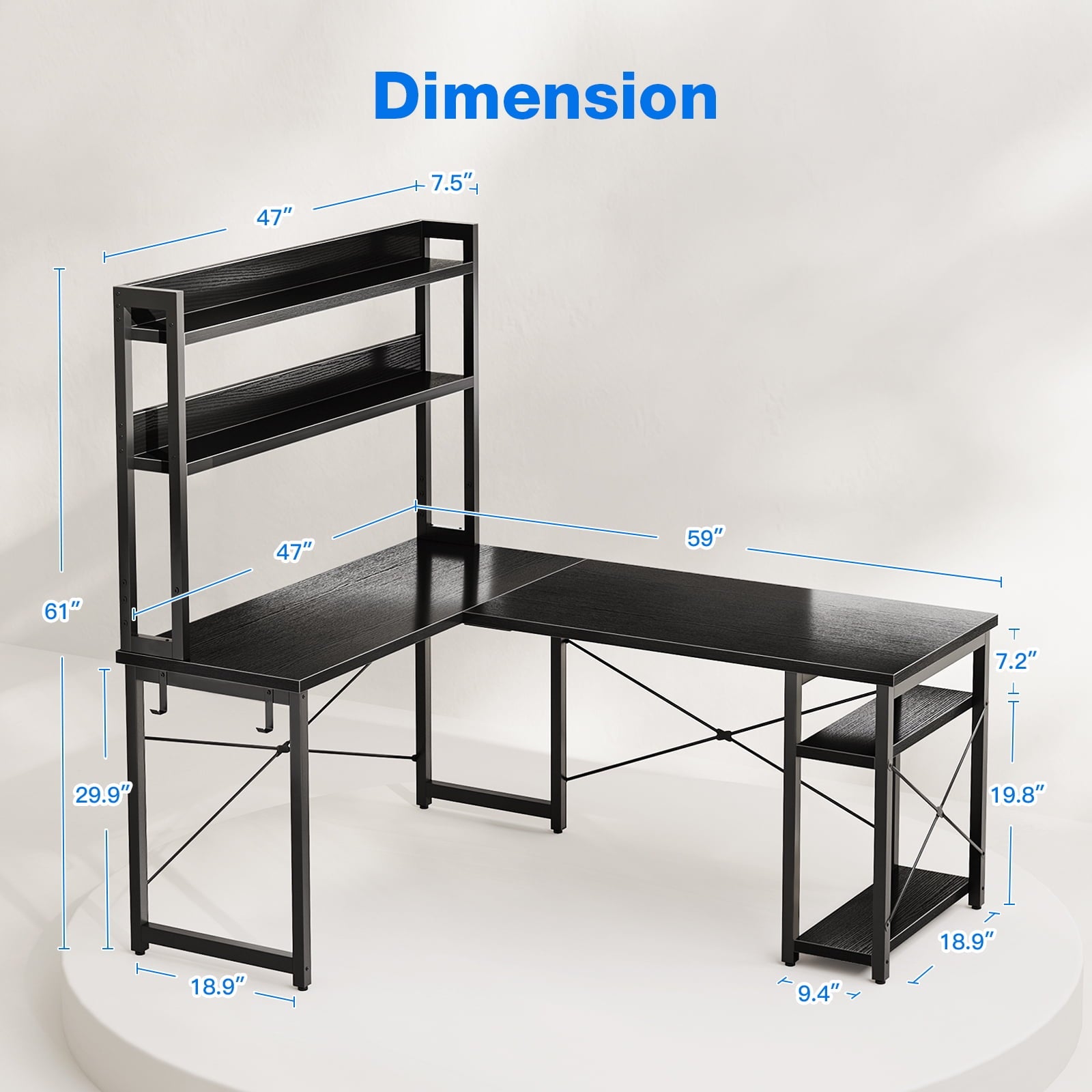 59in Reversible L-Shaped Gaming Desk with Hutch, Office Desk with Storage Shelves for Home Office, Corner Computer Desk with Headphone Hook, Black