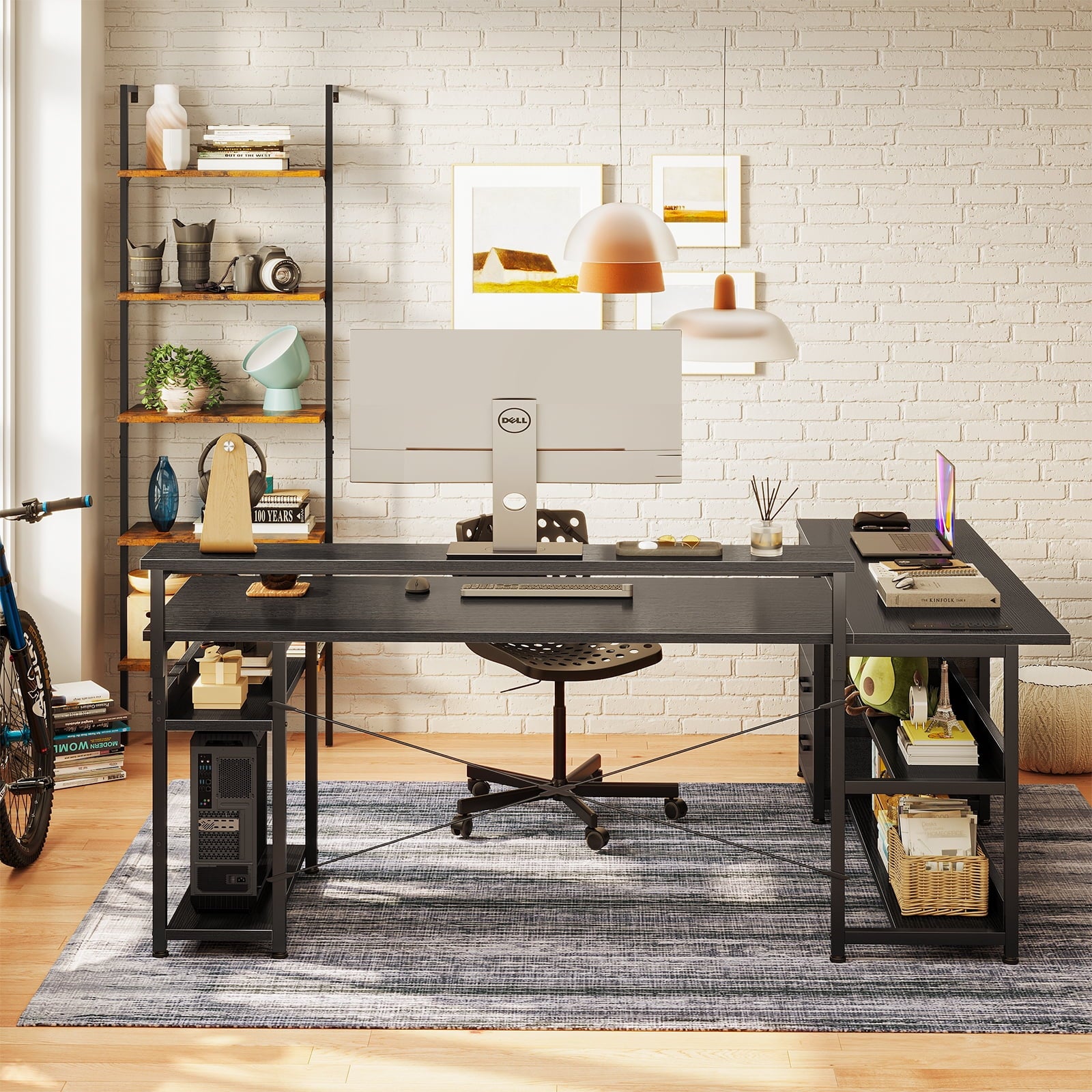 This L shaped desk comes with an adjustable height shelf 10cm, 13cm, 16cm. Compared to other fixed-height brackets, an adjustable height shelf could relax your spine more effectively.