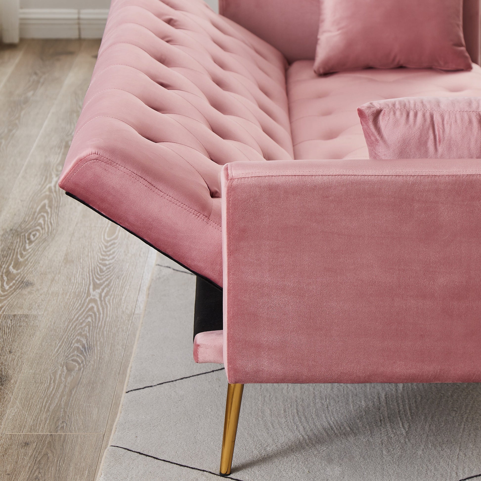 - STURDY AND DURABLE:The velvet sofa bed has 5 golden durable tapered legs,which will not crack as easily as wooden legs. It ensures that the sofa can bear heavier weight,and even if two 300-pound people sit on the sofa without deformation.