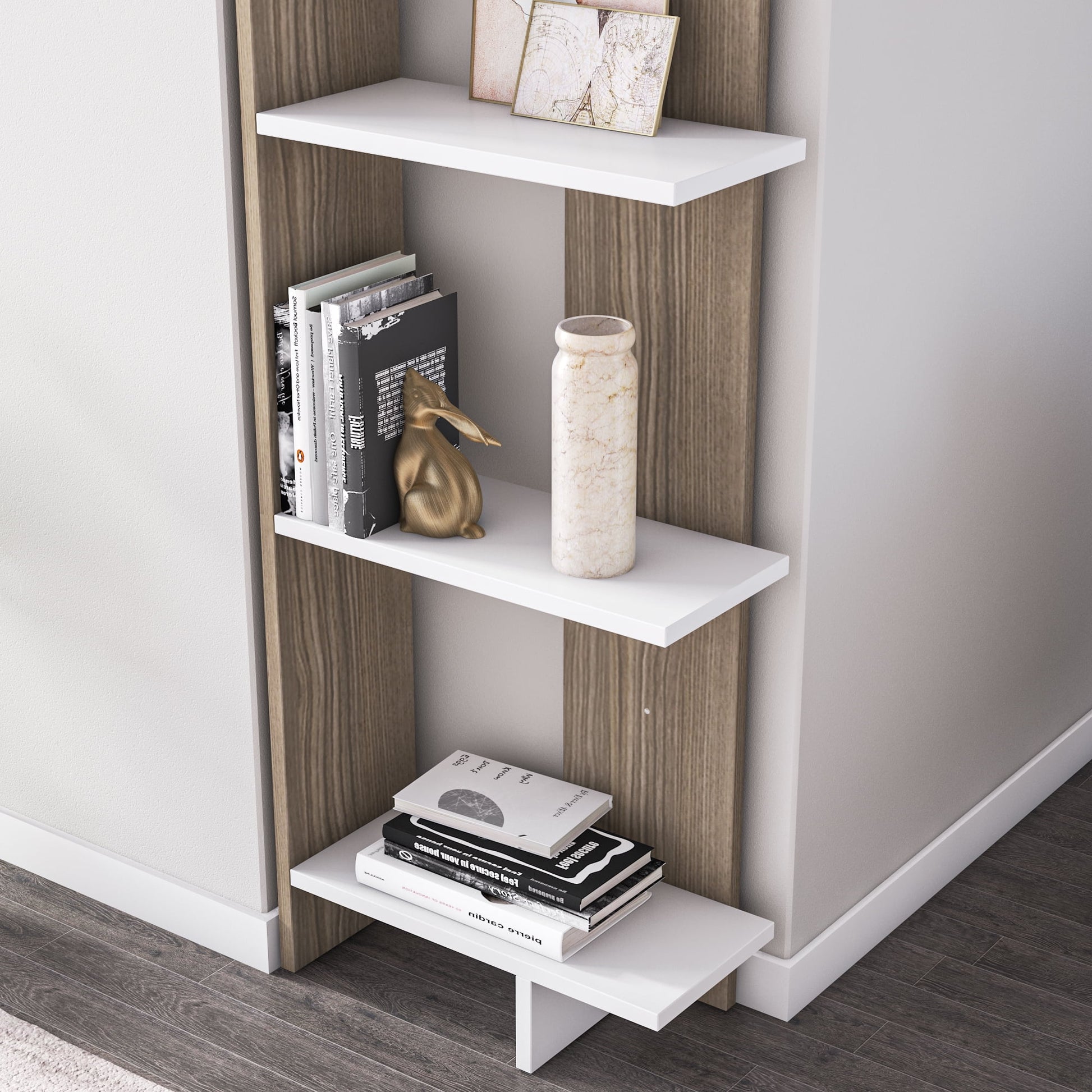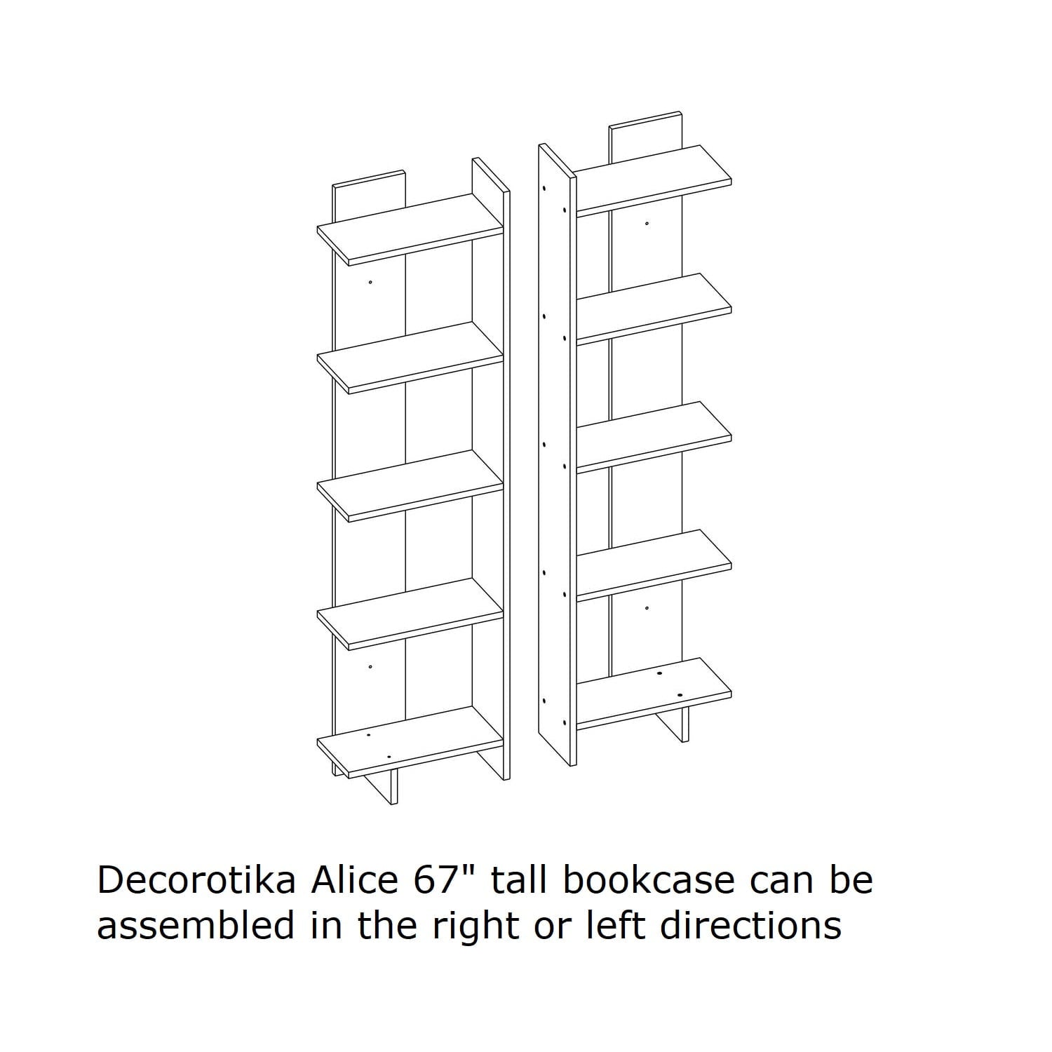 Decorotika Alice 67" tall ladder corner unit bookcase displays your books and decor in a minimalist style. It can be assembled in the right and left directions. This bookcase strikes a tall, open silhouette. Designed to fit right in the corner of your room, this space-saving design includes 5 shelves for displaying all your novels, framed photos, and collected curios. It is made of 18 mm thick melamine veneered particleboard and banded with PVC edge band. It is manufactured using health-friendly materials. The product will be delivered to the customer in the original package as disassembled. It is designed to be assembled by the customer using simple a power drill.