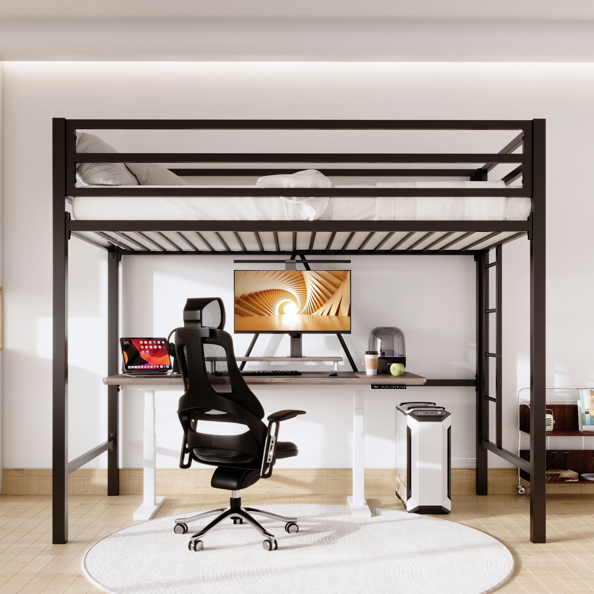 Sifurni Black Heavy Duty Twin Size Metal Loft Bed with Full-Length Guardrail & Removable Stairs