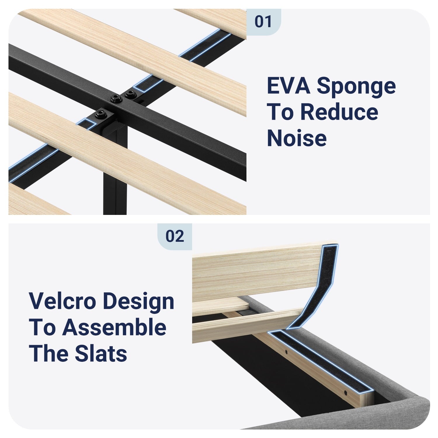 - Stable and Firm Structure: With an interior steel framework and wood slats, it can support your mattress firmly. No box spring is needed.