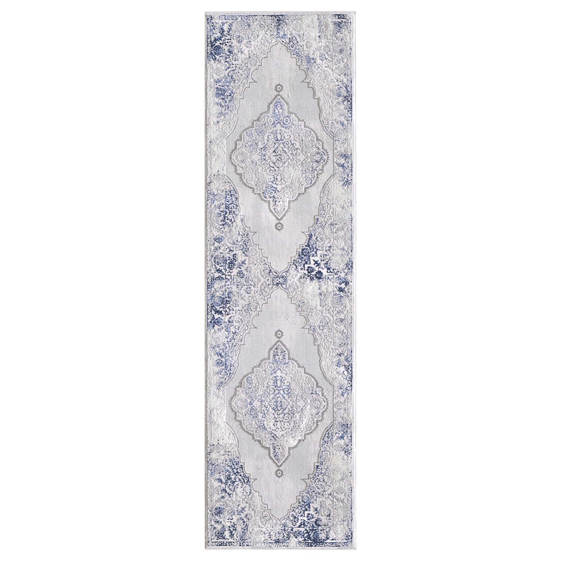 Allstar Rugs 2' 0in x 6' 11in Gainsboro Grey Traditional Persian Themed Polyester Runner with a Blue Bijar Design and Ivory Accents. Machine-Made in Turkey.