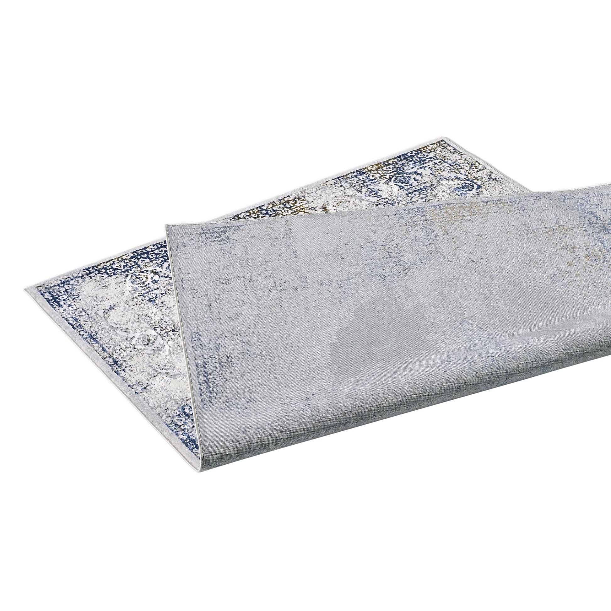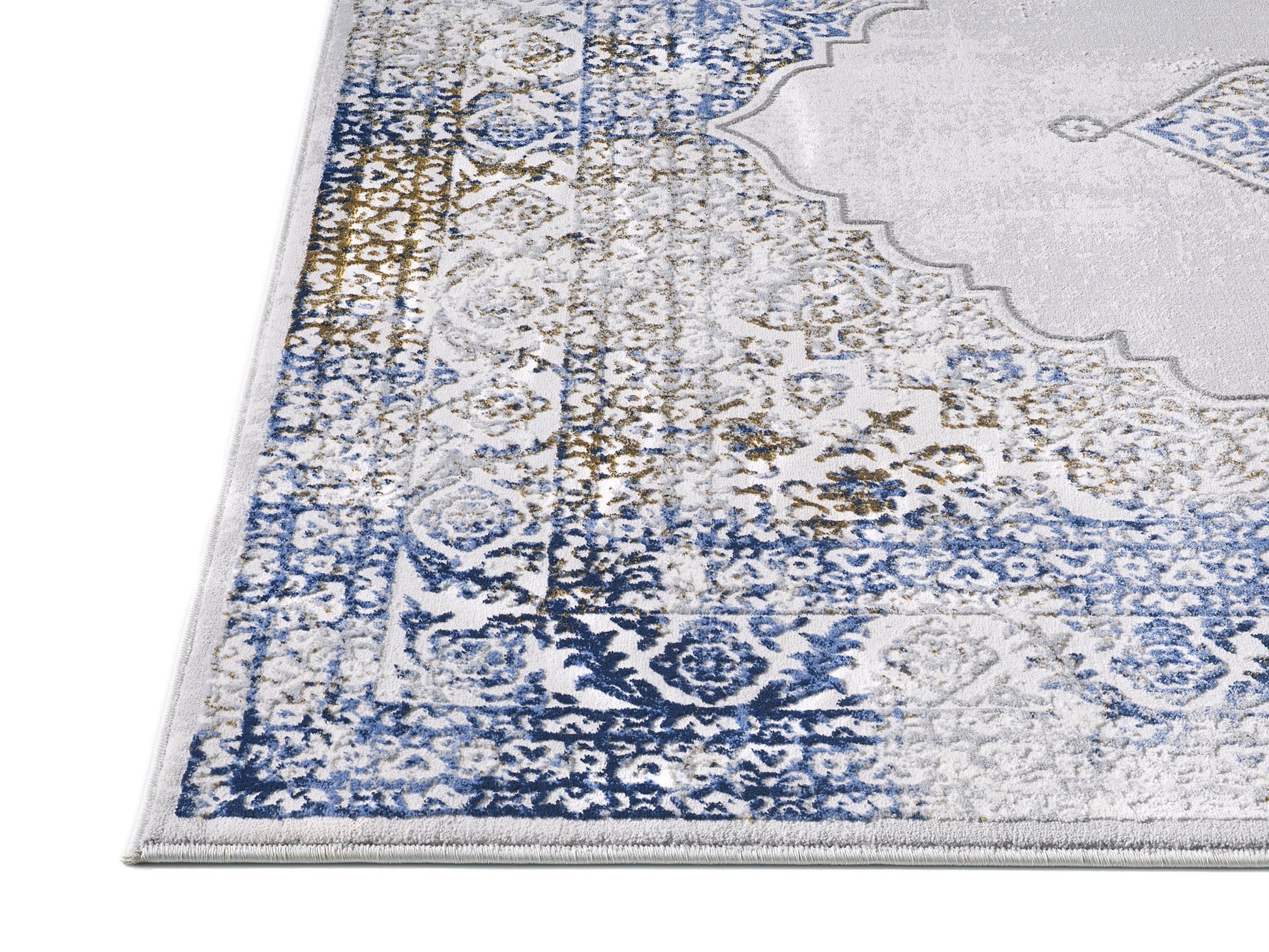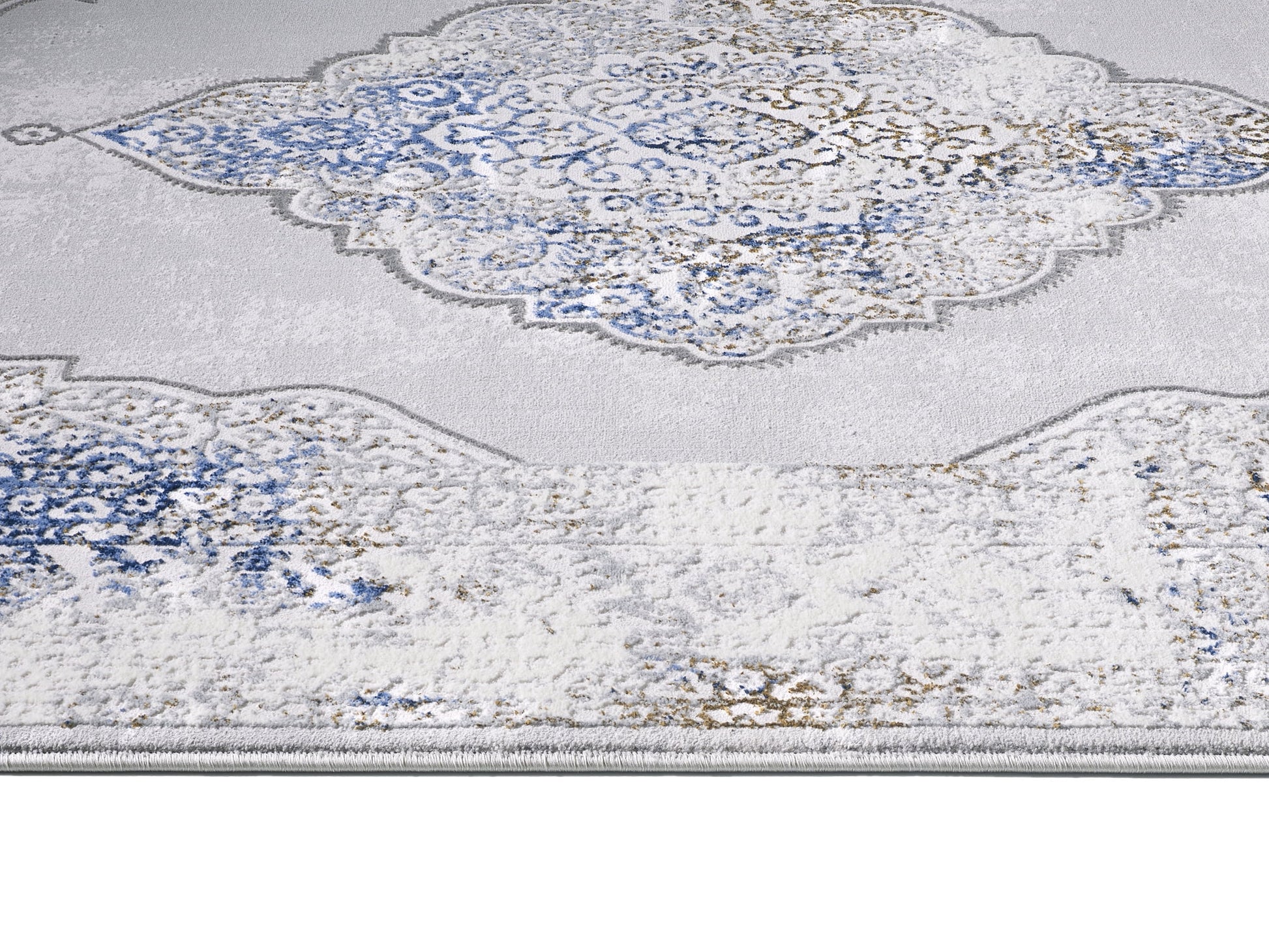 Allstar Rugs 7' 9in x 10' 0in Gainsboro Grey Traditional Persian Themed Polyester Area Rug with a Blue Bijar Design and Gold Accents. Machine-Made in Turkey.