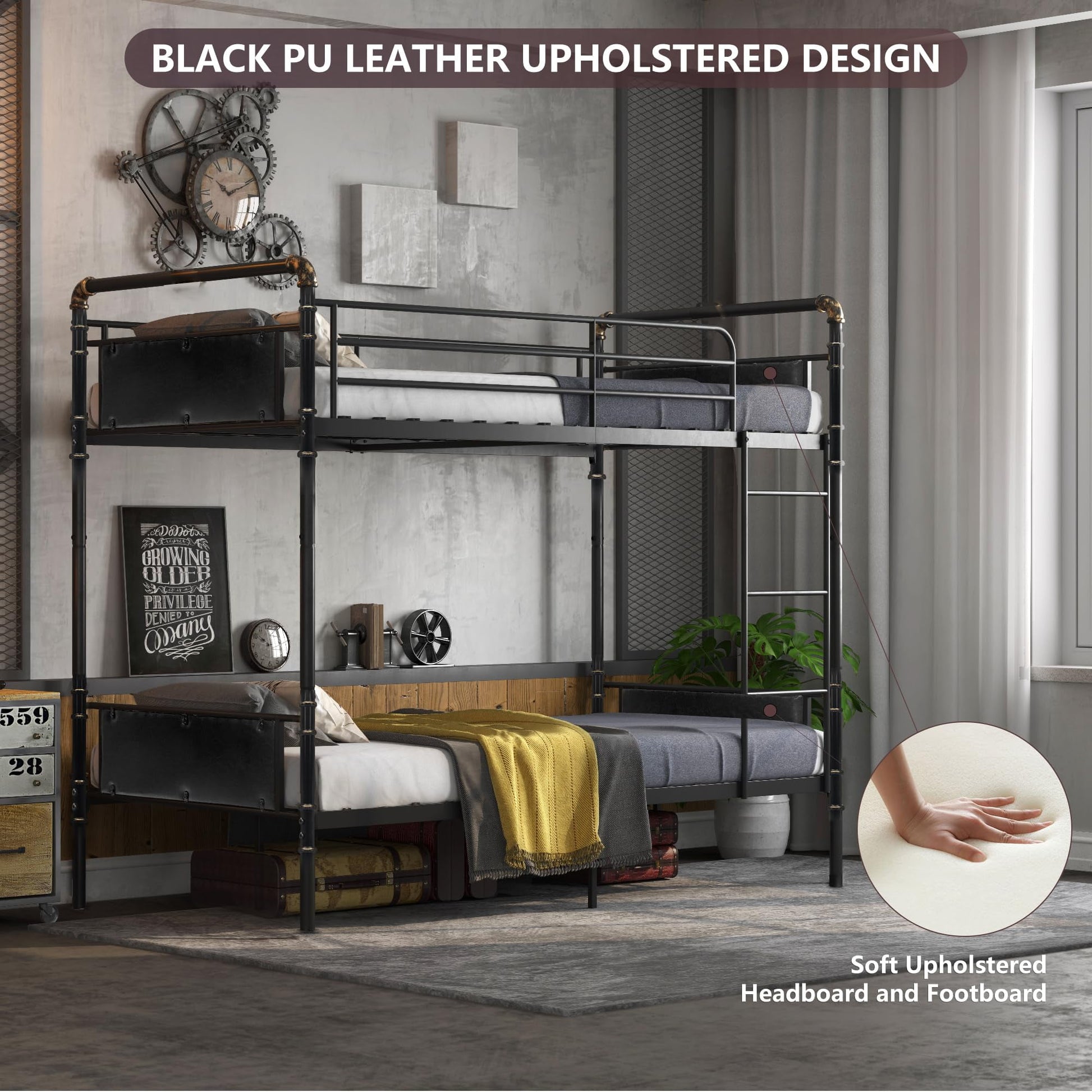 Alohappy Twin over Twin Bunk Bed, Convertible Twin Bunk Beds into 2 Individual Bed, Removable Ladder & Safety Guard Rail for Kids, Easy Assembly, No Box Spring Needed (Black)