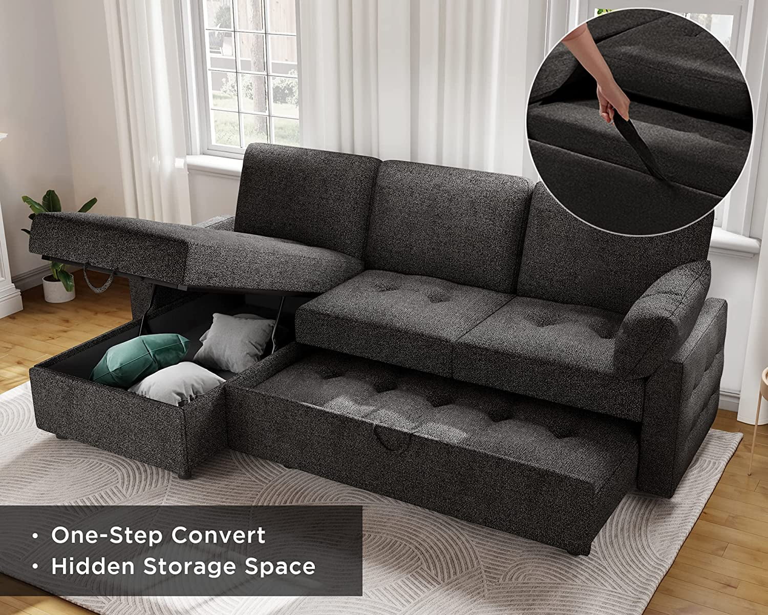 Amerlife Convertible Sofa Bed 87in, Reversible Tufted Sleeper, L Shaped Couch with Storage, Chenille Grey