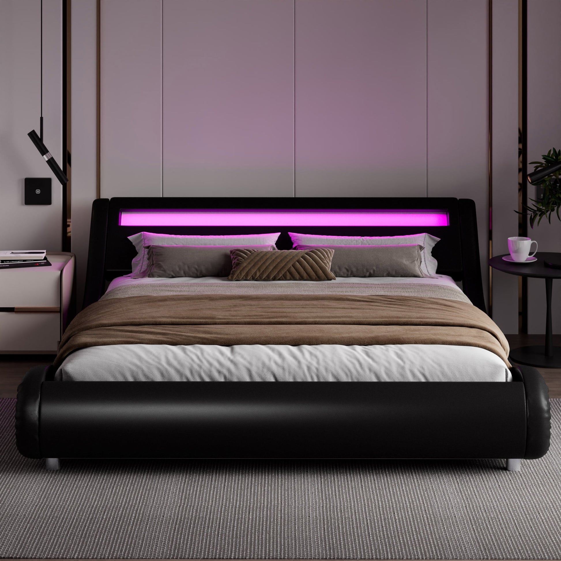 Amolife King Size Wave-Like Curve Deluxe Upholstered Modern Bed Frame with LED Headboard, Black