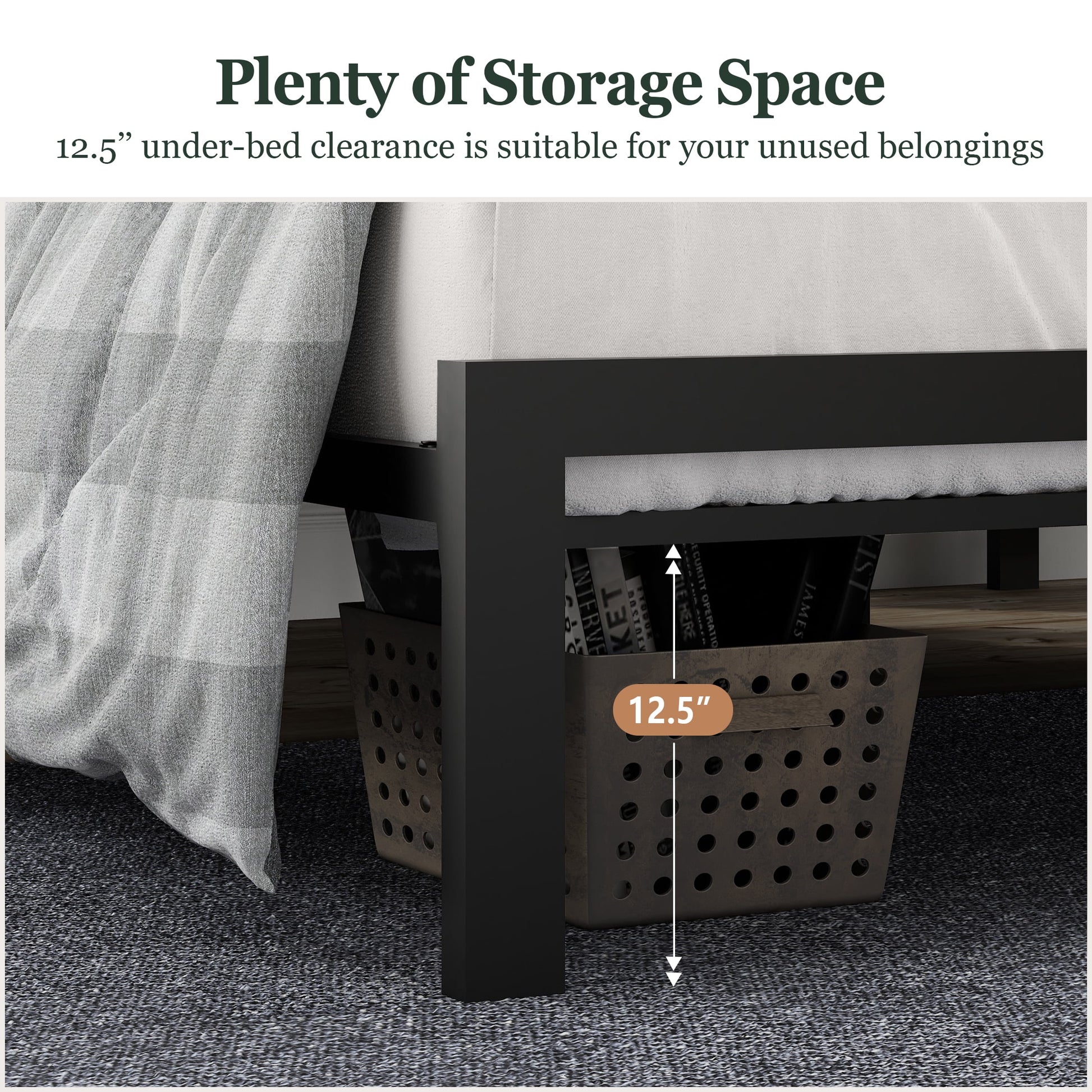 - With 12.5" under-bed space, you can easily save some small odds and boxes under the bed