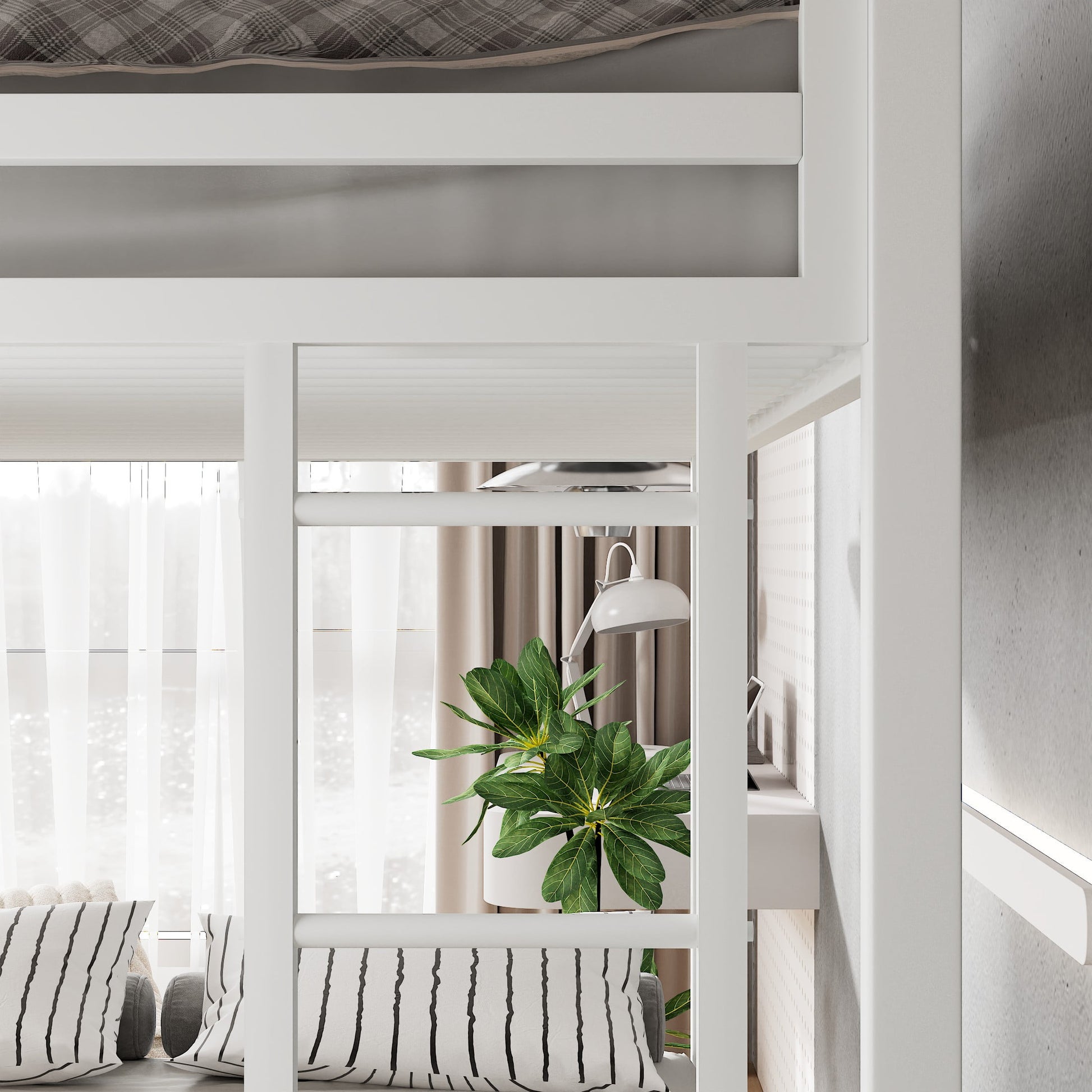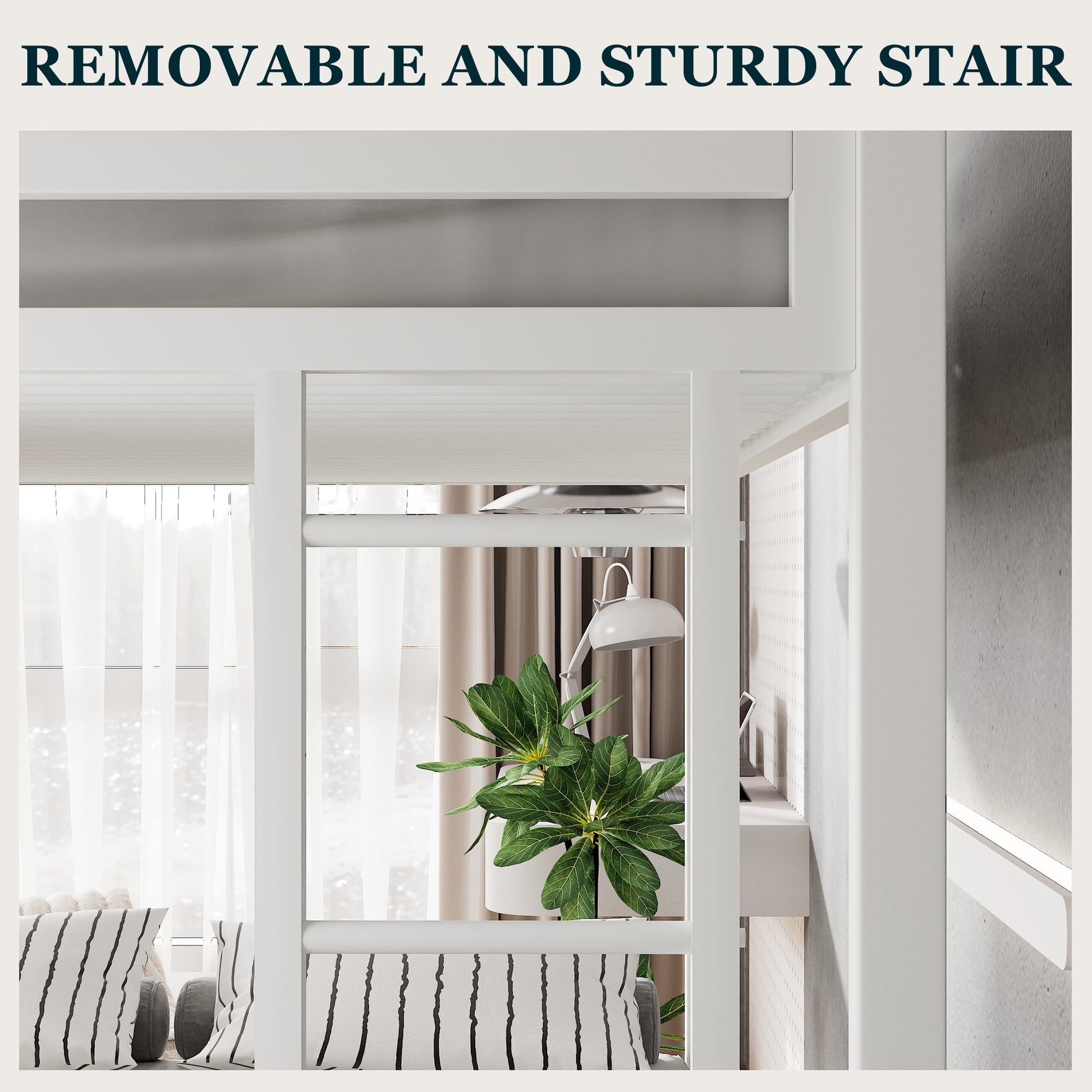 Amolife Twin over Full Size Metal Bunk Bed with Removable Ladder, Full-Length Guardrail, White