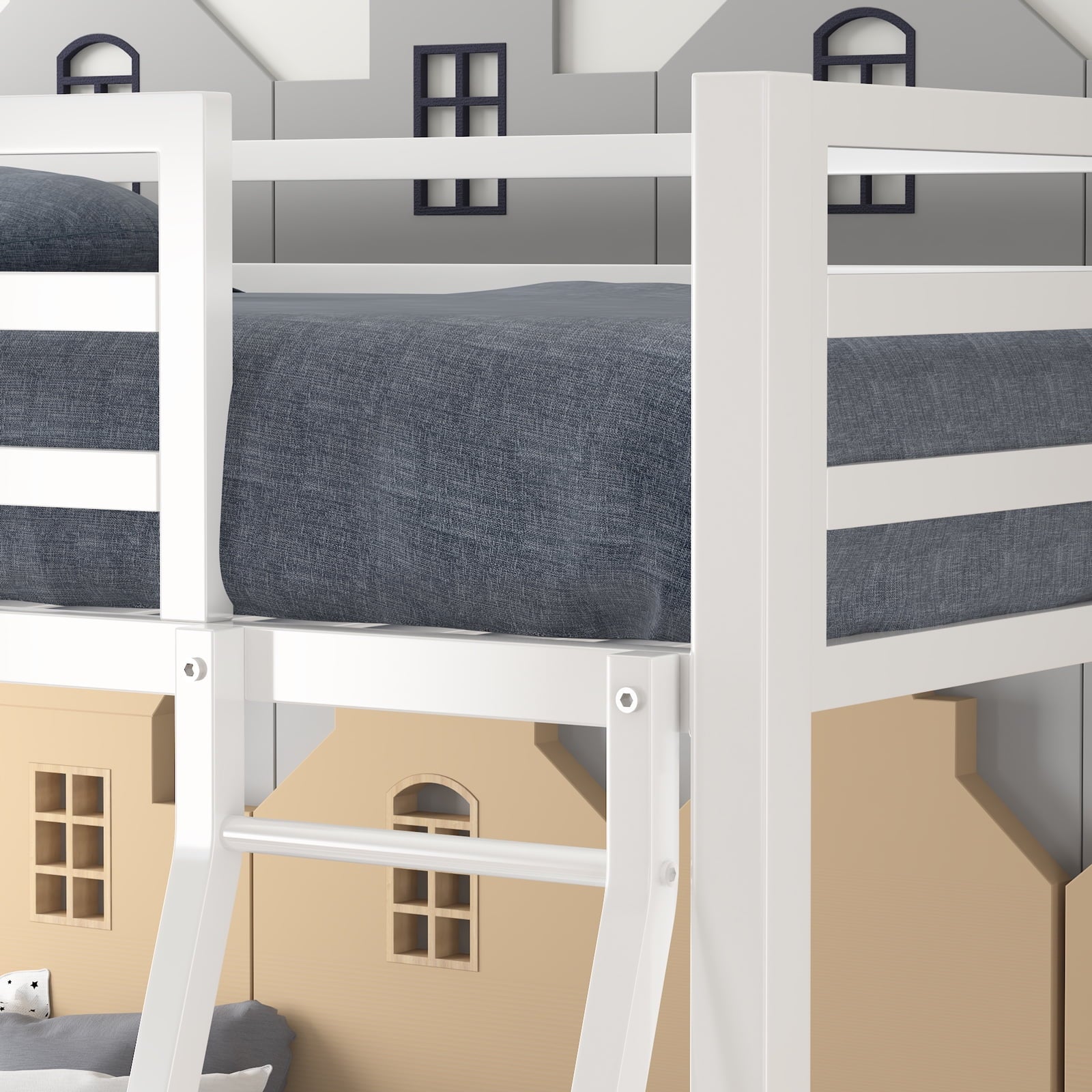 Amolife Twin-Over-Twin Bunk Beds with Heavy Duty Metal Frame and Ladder, Pure White