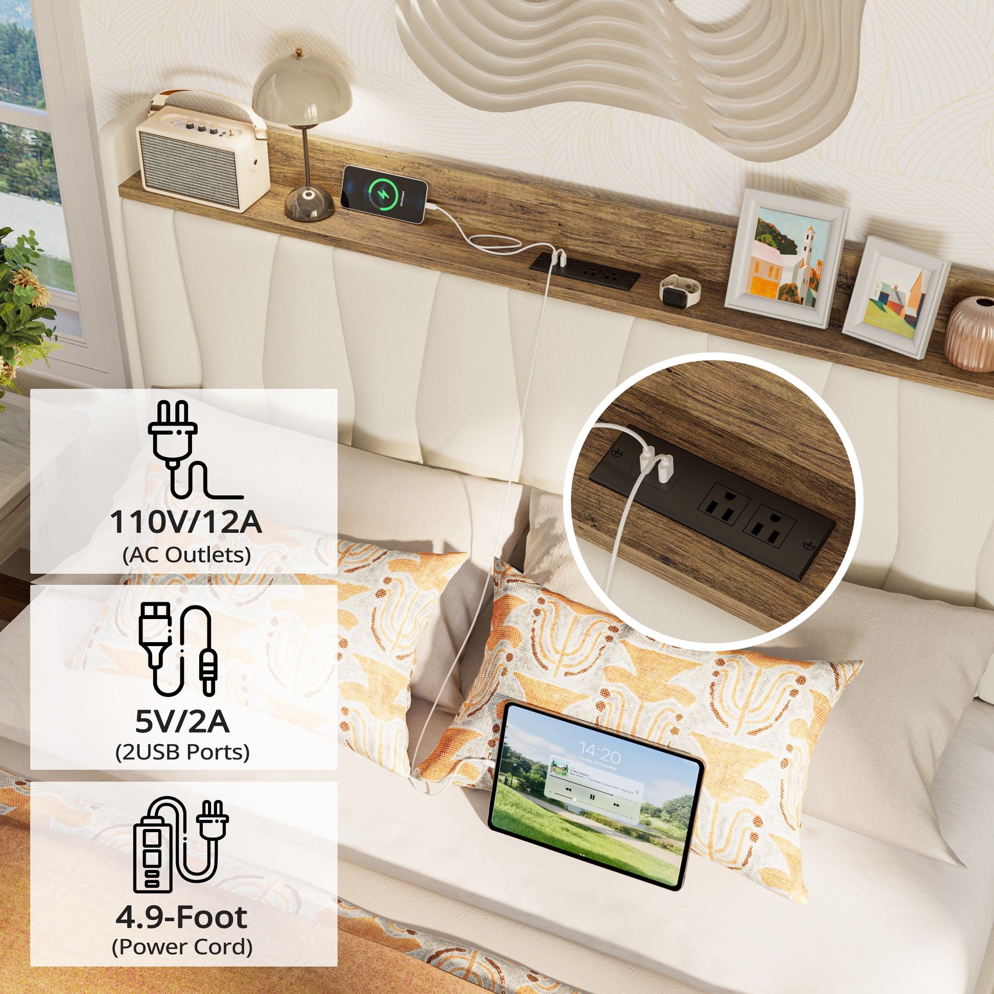 - Storage & Charging 2-In-1 Headboard-- Charging within easy reach for storing books, mobile phones, glasses, alarm clocks, etc. Ideal for reading before bed or while lying in bed