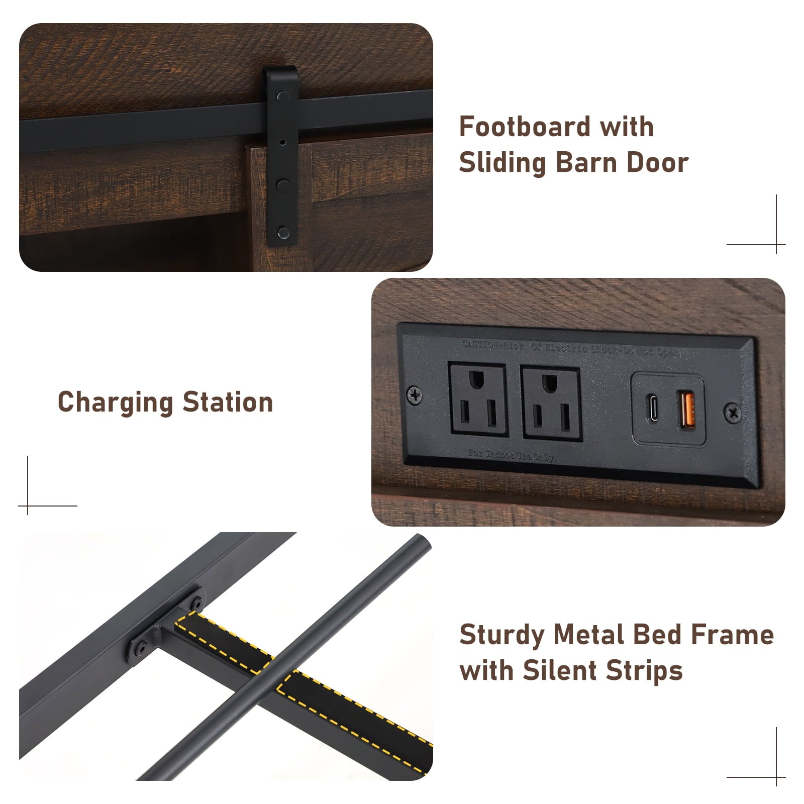 ?Storage Cabinet Footboard W/Sliding Barn Door: A unique sliding door barn design is designed at the end of the bed frame with storage cabinet, which can slide freely to display or hide items. The 58.3\