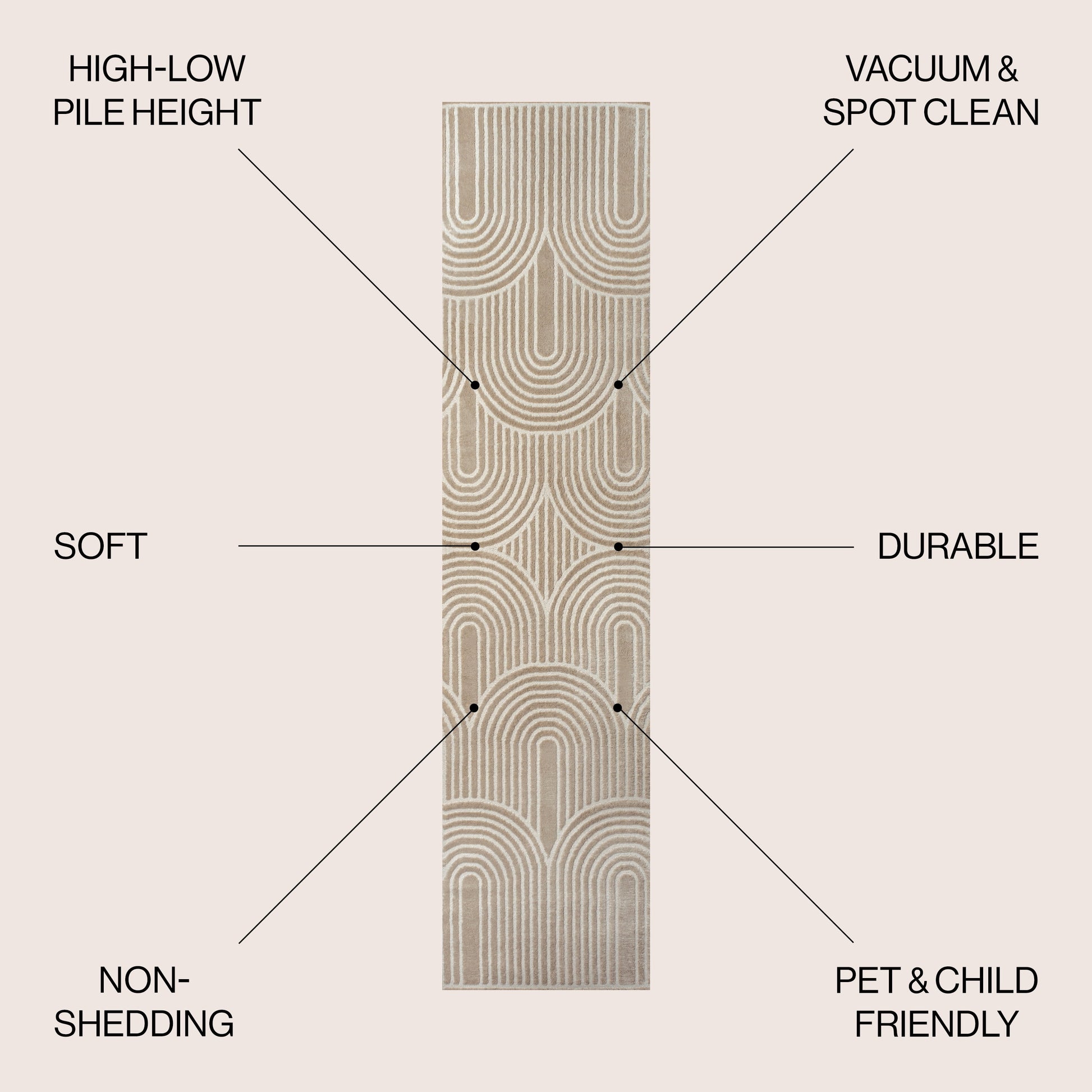 Ariana MidCentury Art Deco Striped Arches Two-Tone High-Low Beige/Cream 2 ft. x 8 ft. Runner Rug