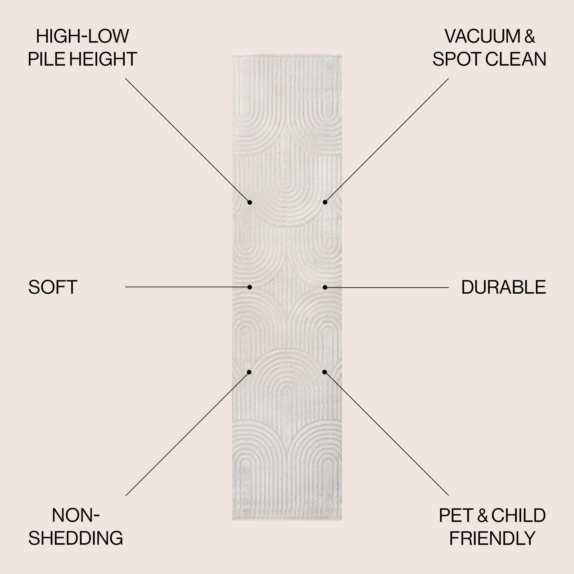 Ariana MidCentury Art Deco Striped Arches Two-Tone High-Low White/Cream 2 ft. x 8 ft. Runner Rug