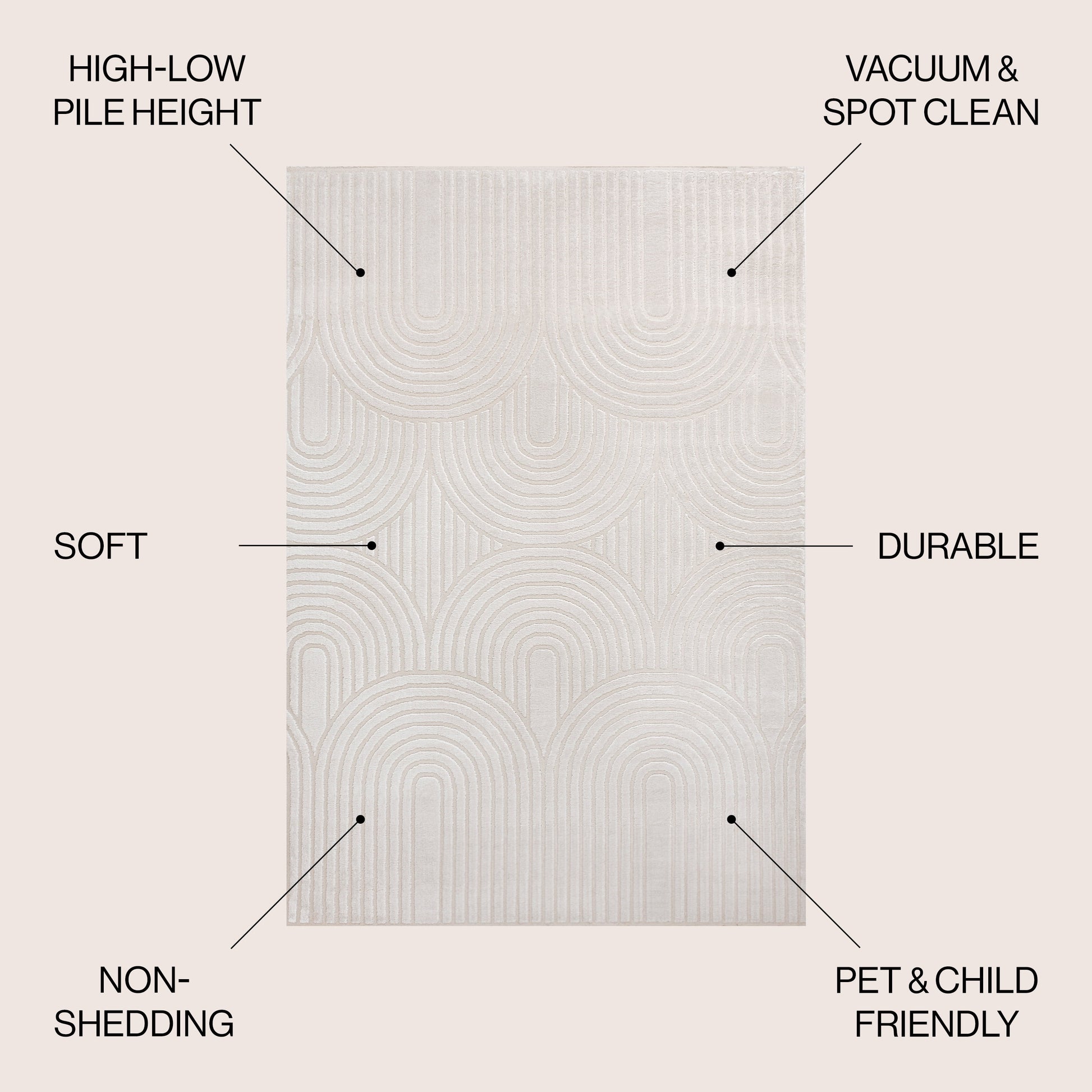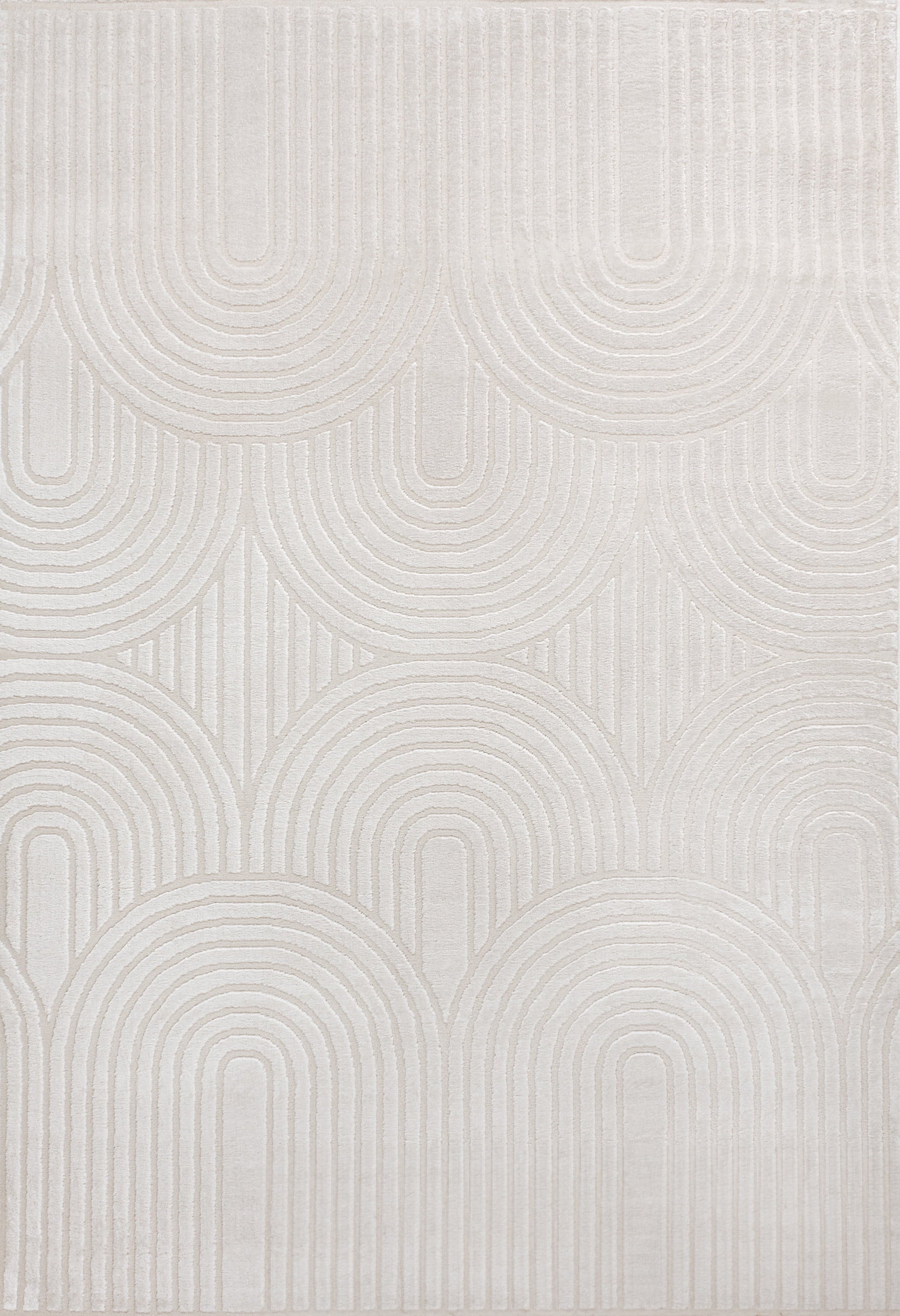 Ariana MidCentury Art Deco Striped Arches Two-Tone High-Low White/Cream 8 ft. x 10 ft. Area Rug