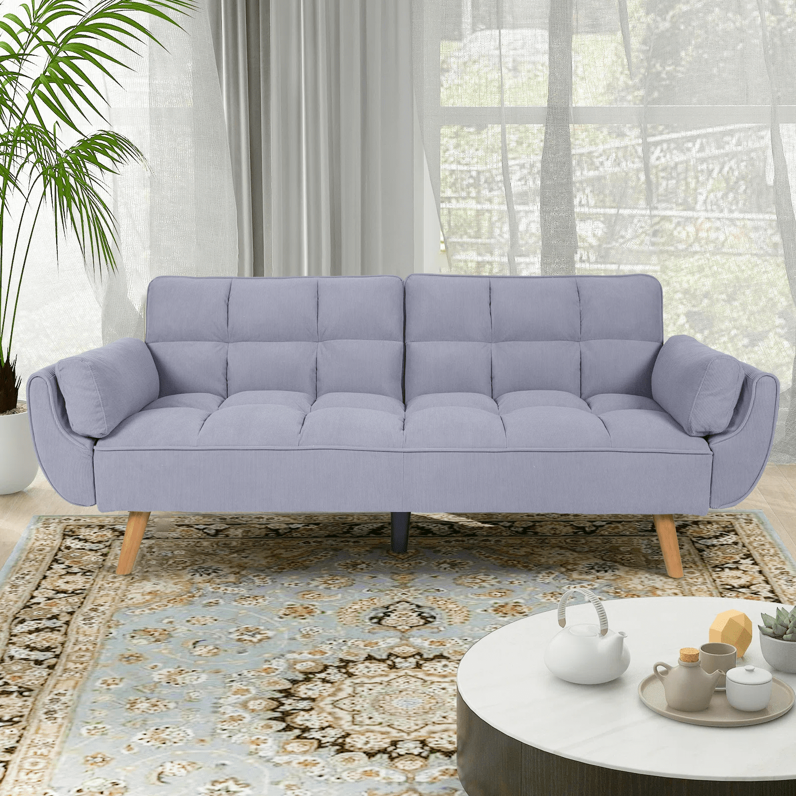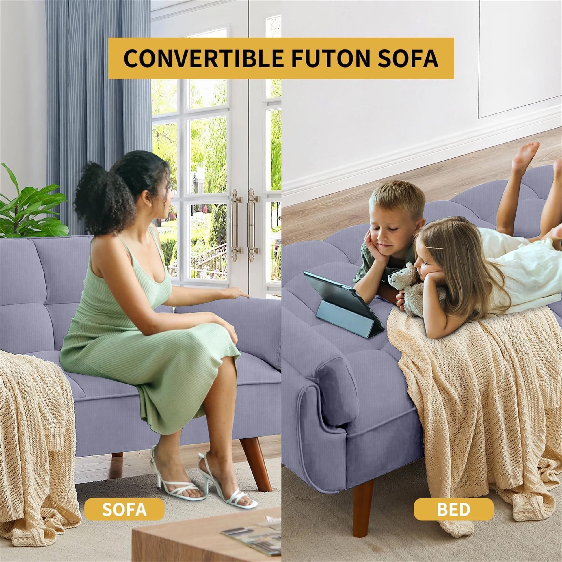 - CONVERTIBLE SOFA BED - This multi-functional futon sofa is designed with a folding backrest, and has three adjustable positions, which can easily convert into a recliner, where you can lie down to enjoy a movie, or convert into a sleeper to take a nap or for your friend's temporary overnight or a lounger to relax and read a book.