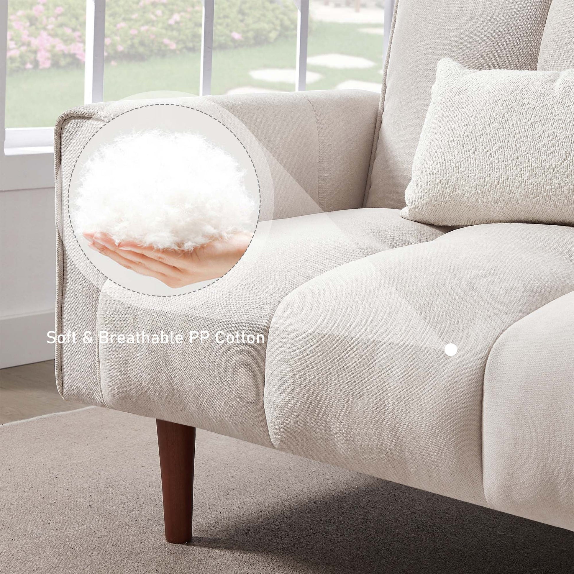 Aukfa 81in Oversized Futon Convertible Sofa Bed, Tufted Couch for Living Room, 2 Pillow, Linen, Beige