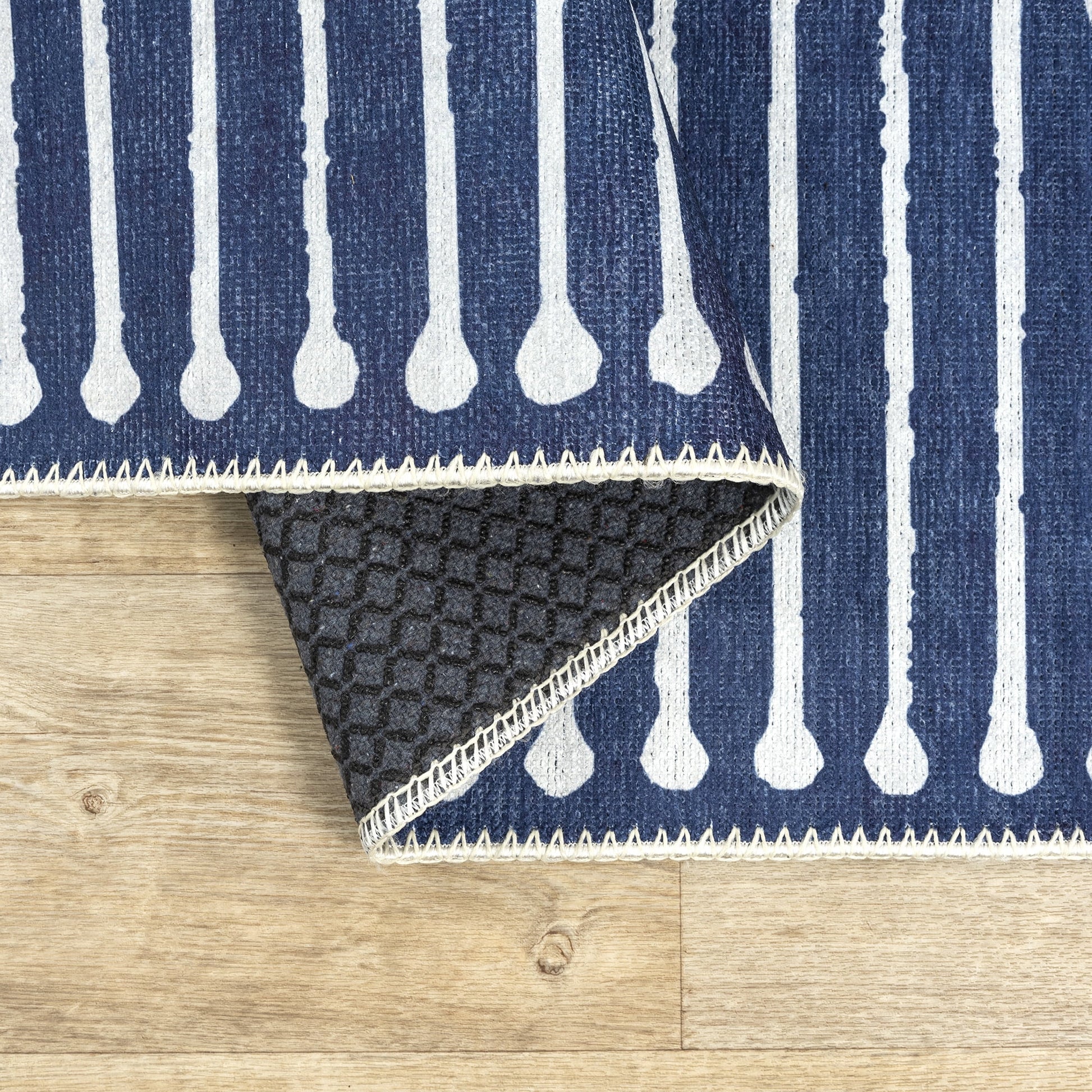 GLN Rugs, Assos - This 3x5 modern machine washable rug is designed to elevate your home with style, coziness, and durability. This modern blue washable area rug has nano-wipe technology, meaning it's liquid-repellent. The liquid-repellent coating protects your washable rug from spills and stains. Have peace of mind during family gatherings, and pet mishaps, and enjoy the easy cleanup process. If the dirt sinks in, simply cold wash your rug and viola! Plus, it's anti-slip. The non-slip bottom ensures your washable rug stays in place, preventing the rug from bunching or sliding, especially when children or pets are playing or during regular daily use.