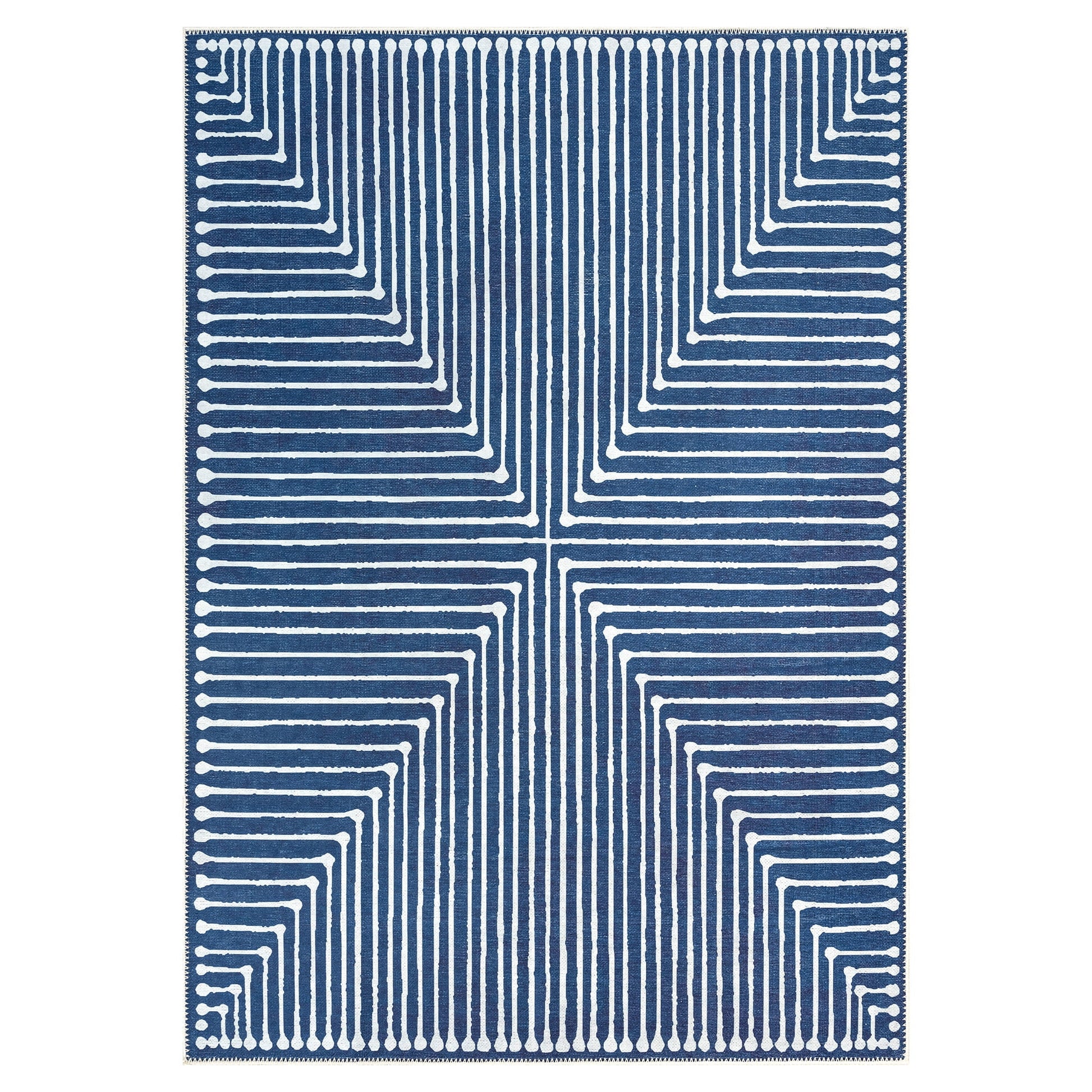 GLN Rugs, Assos - This 4x6 modern machine washable rug is designed to elevate your home with style, coziness, and durability. This modern blue washable area rug has nano-wipe technology, meaning it's liquid-repellent. The liquid-repellent coating protects your washable rug from spills and stains. Have peace of mind during family gatherings, and pet mishaps, and enjoy the easy cleanup process. If the dirt sinks in, simply cold wash your rug and viola! Plus, it's anti-slip. The non-slip bottom ensures your washable rug stays in place, preventing the rug from bunching or sliding, especially when children or pets are playing or during regular daily use.
