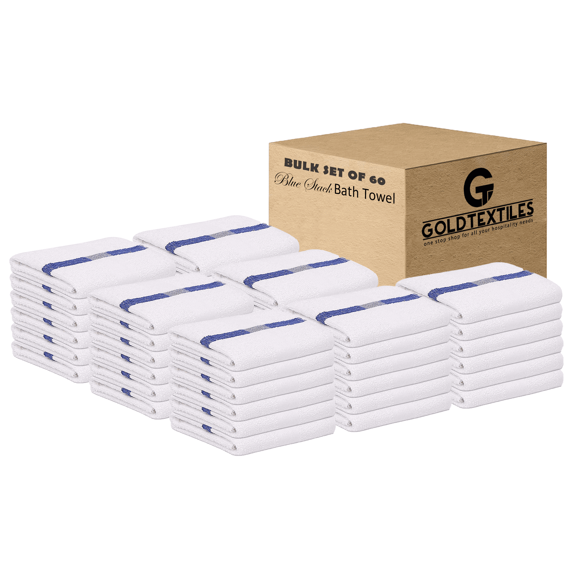 Gold Textile Blue Center Stripe 60 Pack 22 x 44 inches Economy Bath Towels Cotton Blend Easy care
