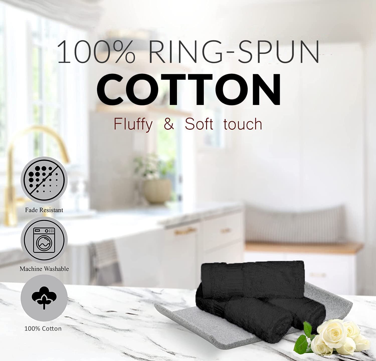 All edges are reinforced to minimize the possibility of being unraveled. Our towel sets are made of 100% Ring-spun cotton which allows them to be super soft, fluffy and plusher towel sets. These towels are lightweight for quick drying yet gives a very soft hand feel and good absorbency. The finest genuine cotton remains fresh and soft after multiple washes of these cleaning towels