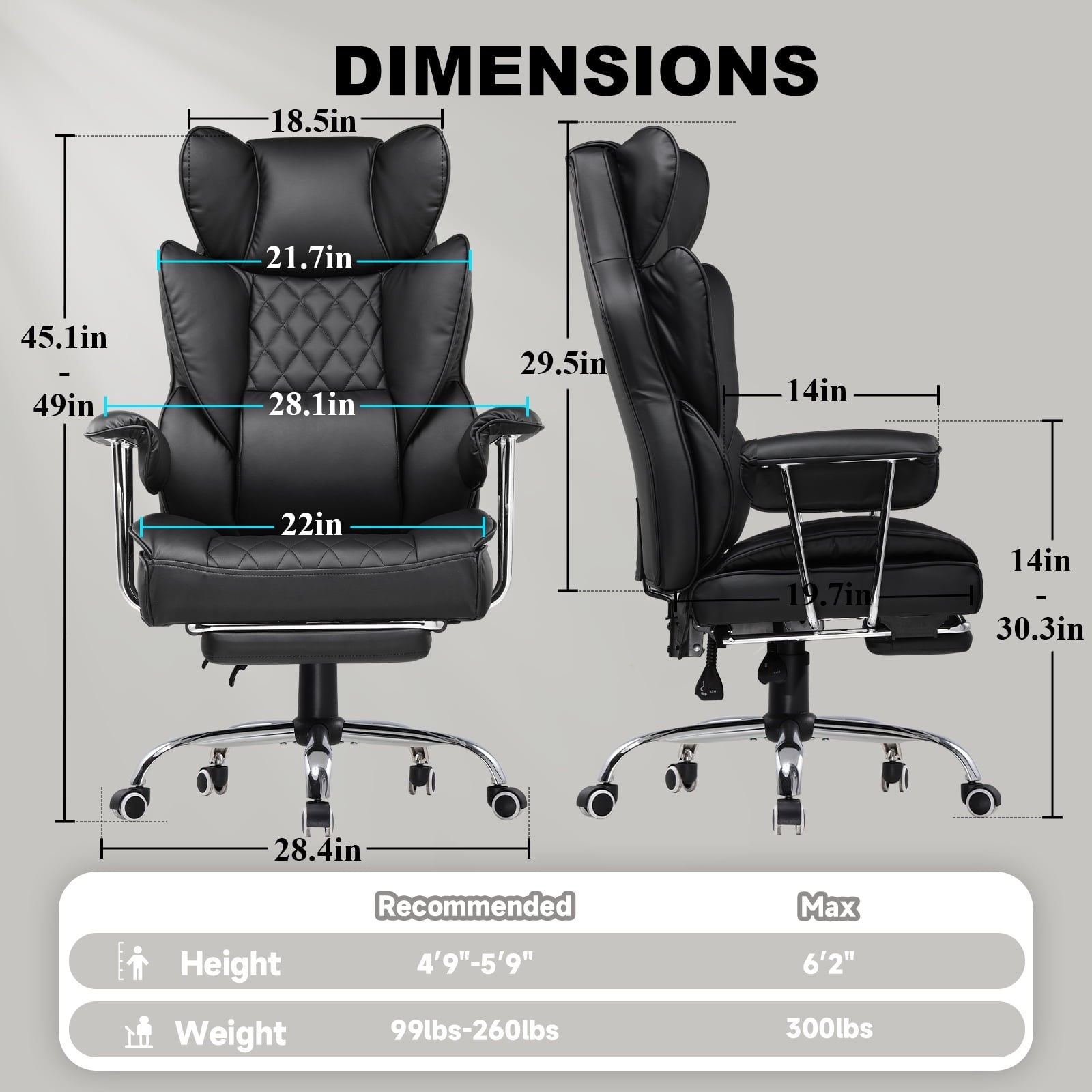 GTRACING Gaming Chair Ergonomic Executive Cozy PU Leather Office Chair with Footrest, Black