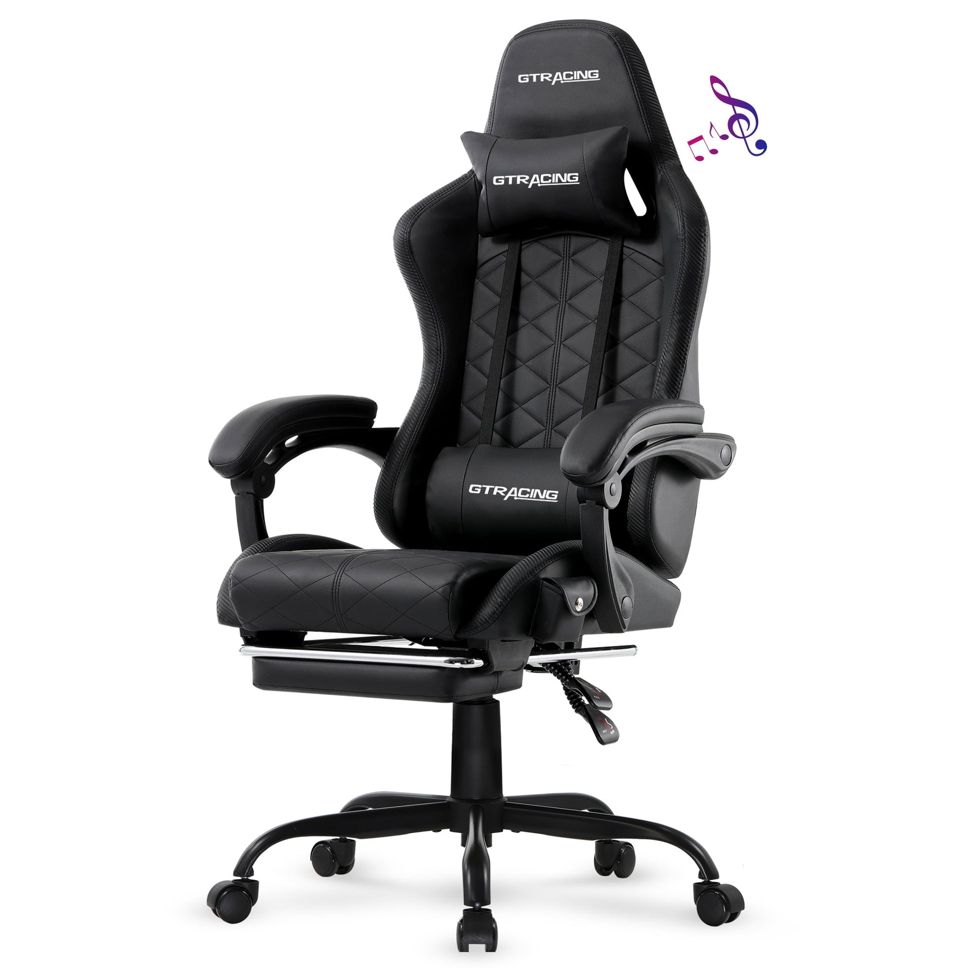 GTRACING GTW-100: Ultimate Reclining Gaming Chair with Bluetooth Sound, Adjustable Pillows, and Footrest, Black