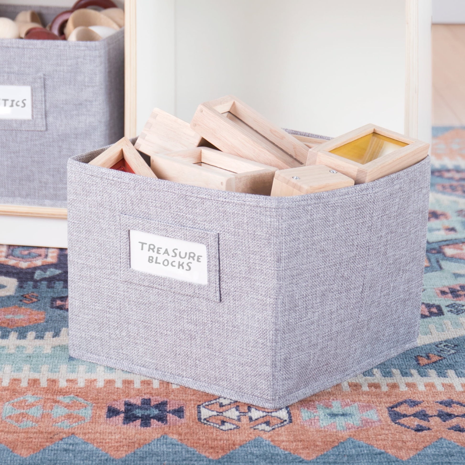 - THREE FABRIC BINS INCLUDED: Keep toys, learning materials and books organized; each bin measures 11"W x 11"D x 9"H