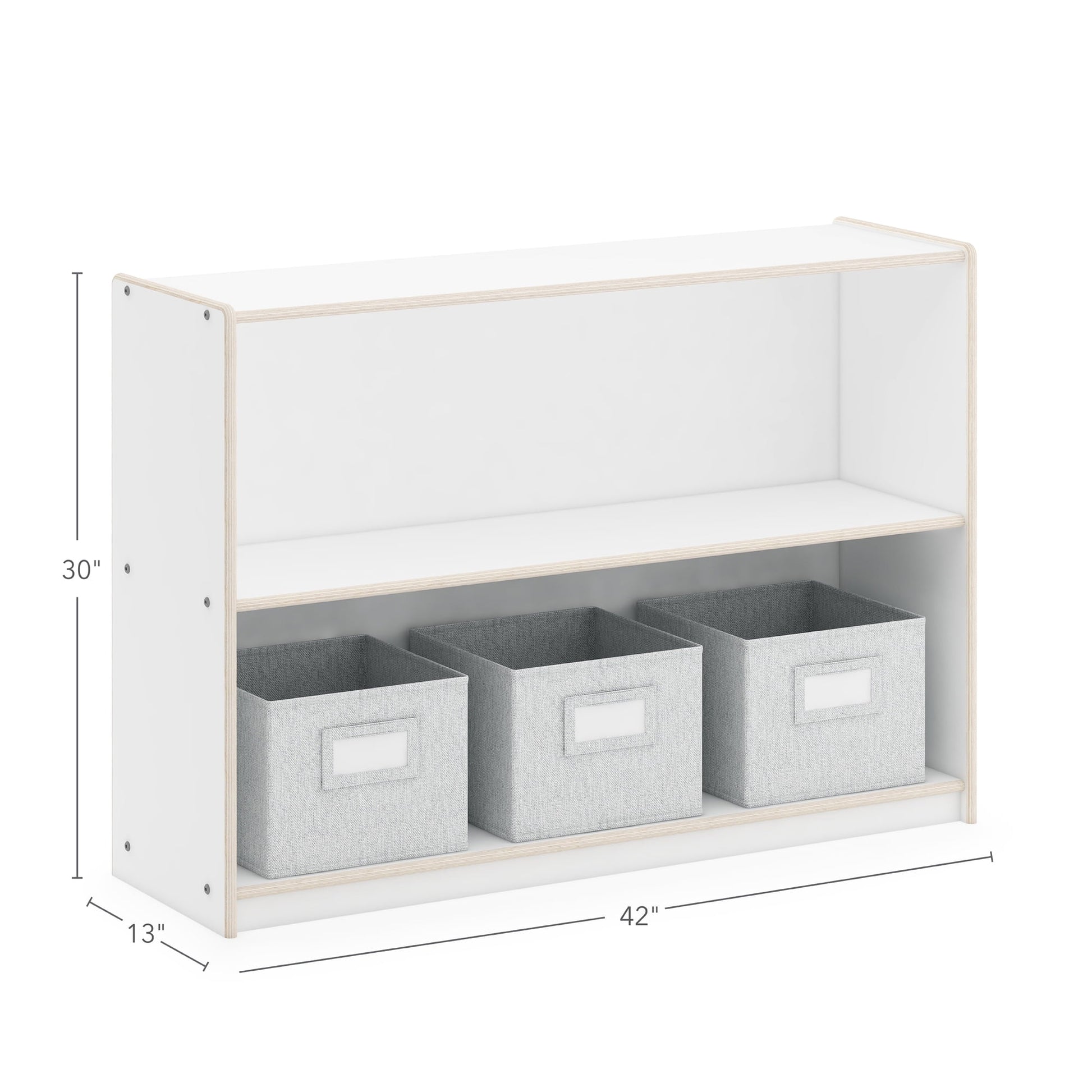 Guidecraft EdQ 2-Shelf Open Storage 30in - White: Kids' Low Wooden Bookshelf, Classroom and Playroom Furniture with Book and Toy Bins