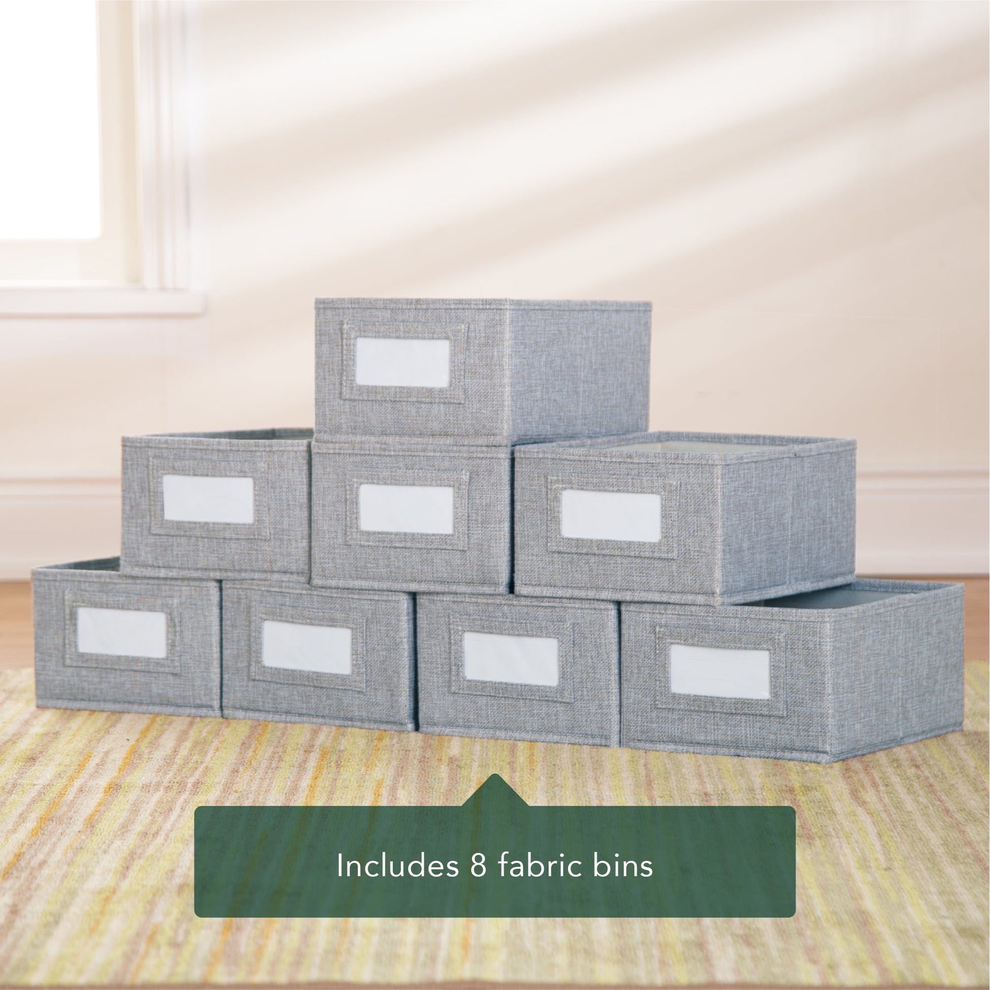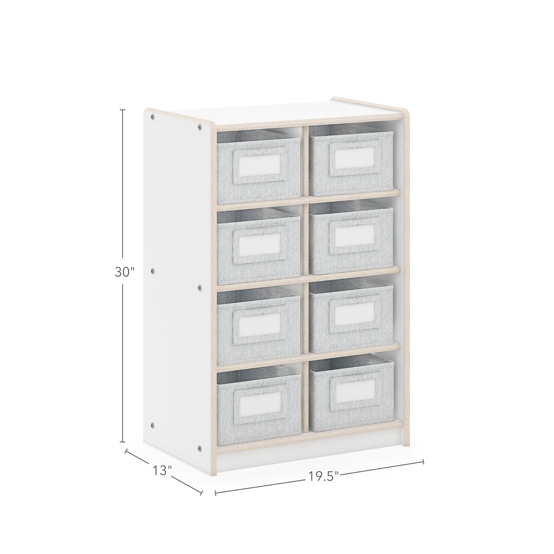 - EIGHT FABRIC BINS INCLUDED: Keep toys, learning materials and books organized; each bin measures 8.2"W x 10.7"D x 5.3"H