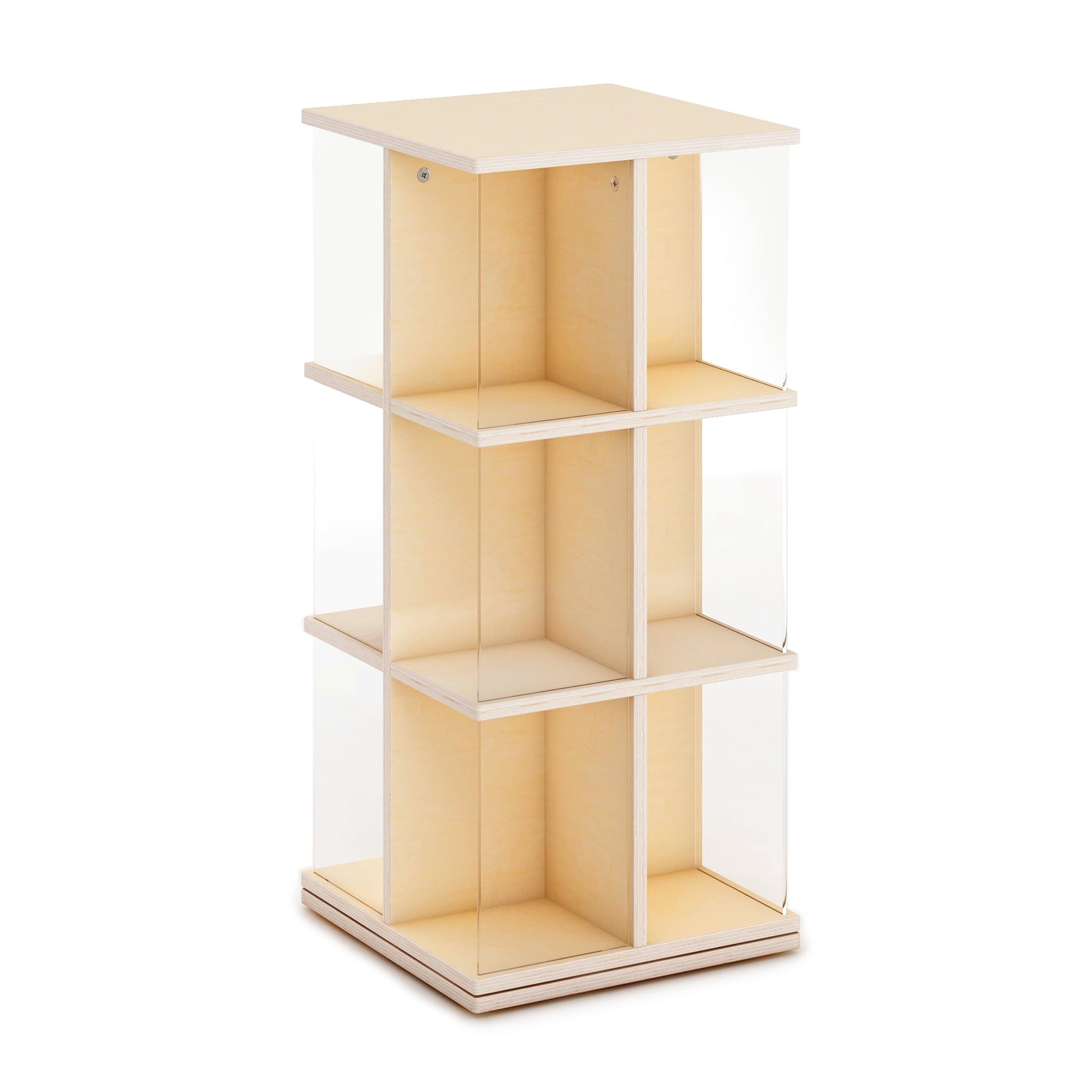 Guidecraft's EdQ collection satisfies practical storage and organizational needs in classrooms, homeschool environments and kids' play areas. The versatile, attractive furniture pieces in this complete collection provide opportunities for various easy configurations in any spaces where children learn and play. The EdQ Rotating Book Display 3 Tier provides a unique solution for both storage and display. Dividers, acrylic sides, and a rotating design allow for easy access on all sides, allowing children to choose their favorite book for storytime.