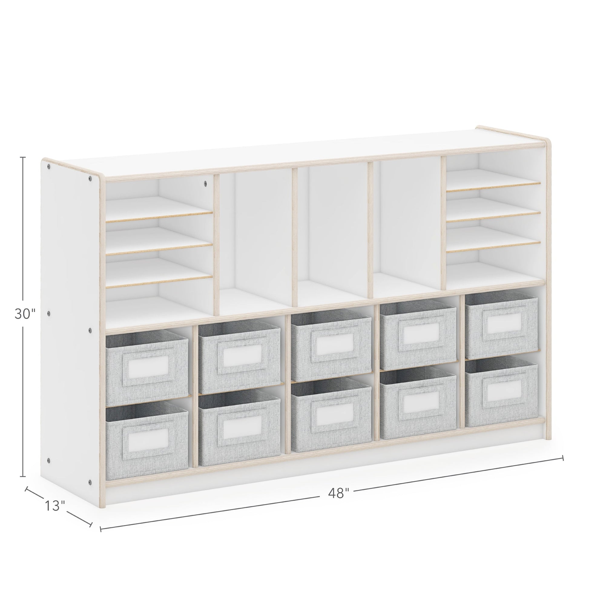 Guidecraft EdQ Shelves and 10 Bin Storage Unit 30in White: Wooden Kids' Classroom Bookshelf with Cubbies and Organization for Home