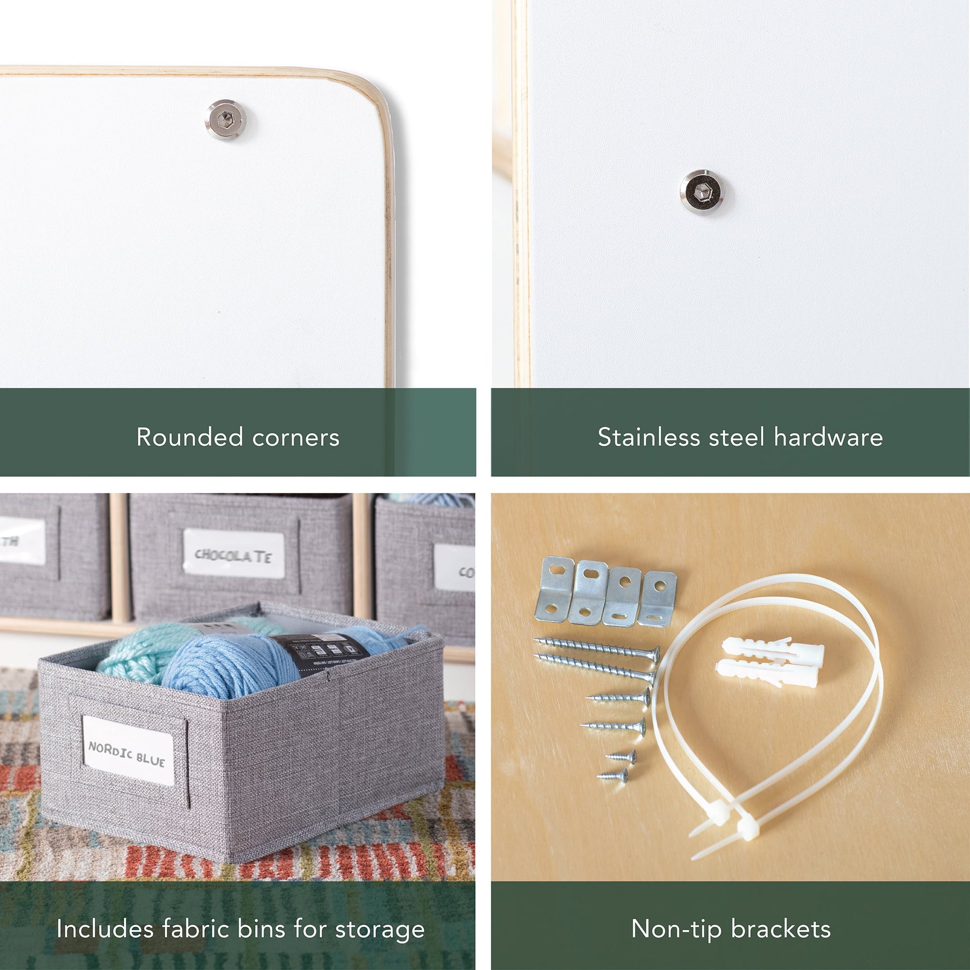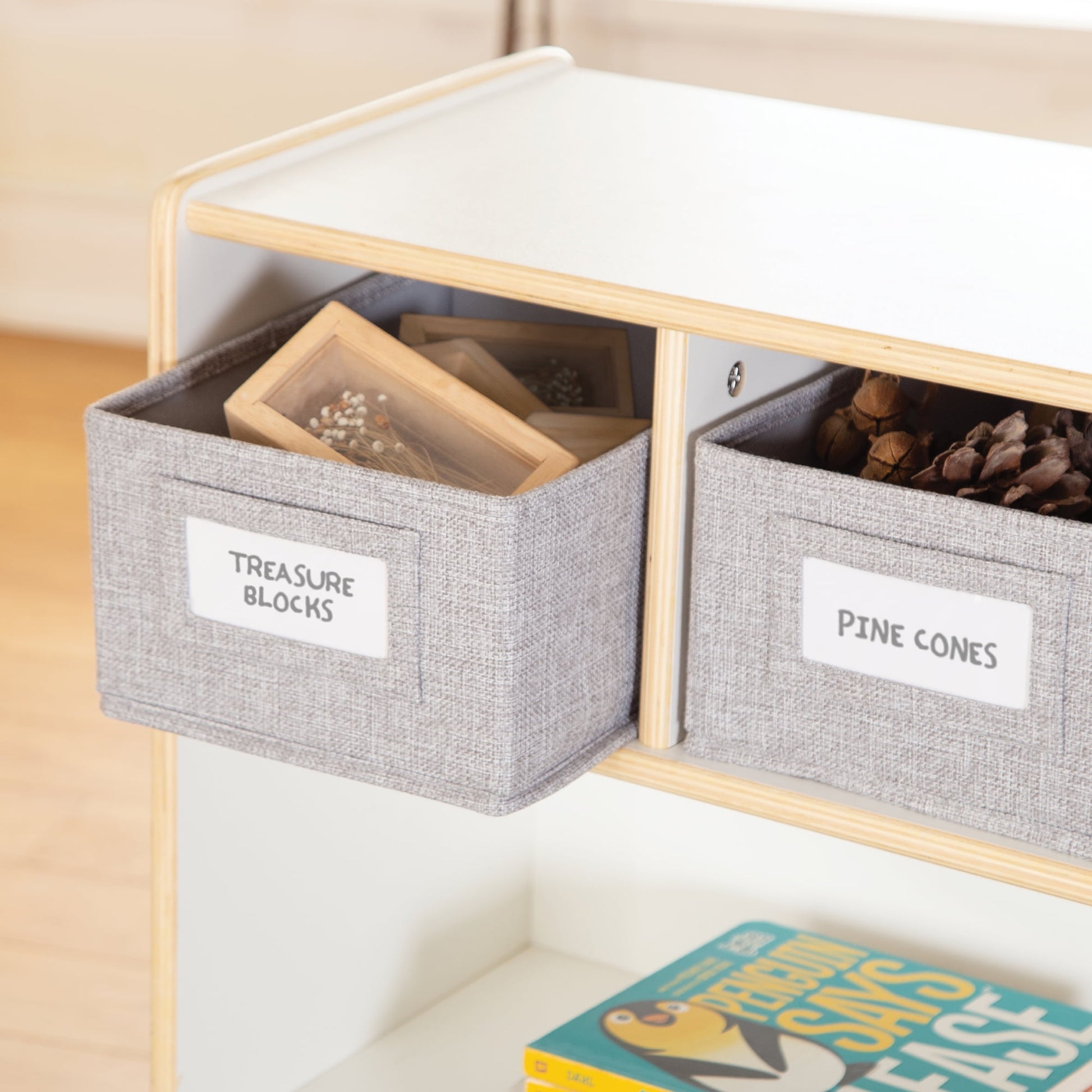 - FIVE FABRIC BINS INCLUDED: Keep toys, learning materials and books organized; each bin measures 8"W x 11"D x 5"H