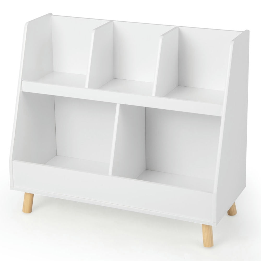 - 2-In-1 Bookshelf and Toy Organizer: 2-tier bookcase offers large space and allows partitioned storage for kid's toys, books, stationery, sundry basket or even decorations. As needed, it can also work as a 5-cube toy chest that comes with anti-falling edges to keep toys in place.