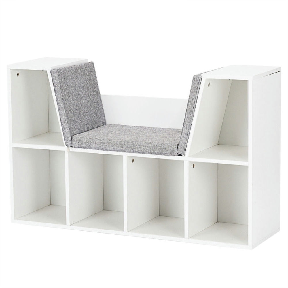 GVN 6-Cubby Kid Storage Bookcase Cushioned Reading Nook-White, Toy Organizers and Storage for Kids, Boys, Girls, Nursery