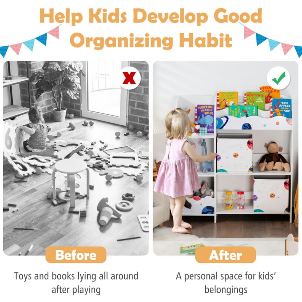 - Help Kids Develop Good Organizing Habit: This 3-tier storage cabinet creates a personal space for kids' belongings, helping kids to learn to organize their toys and books. Designed in kid-friendly height, kids can take things easily. The slots on the top are built for displaying books to stimulate children's interest in reading.