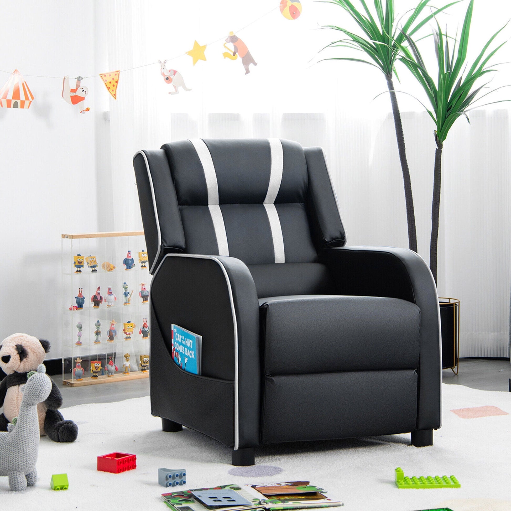 Gymax Kids Recliner Chair Ergonomic Leather Sofa Armchair w/Footrest Side Pocket White