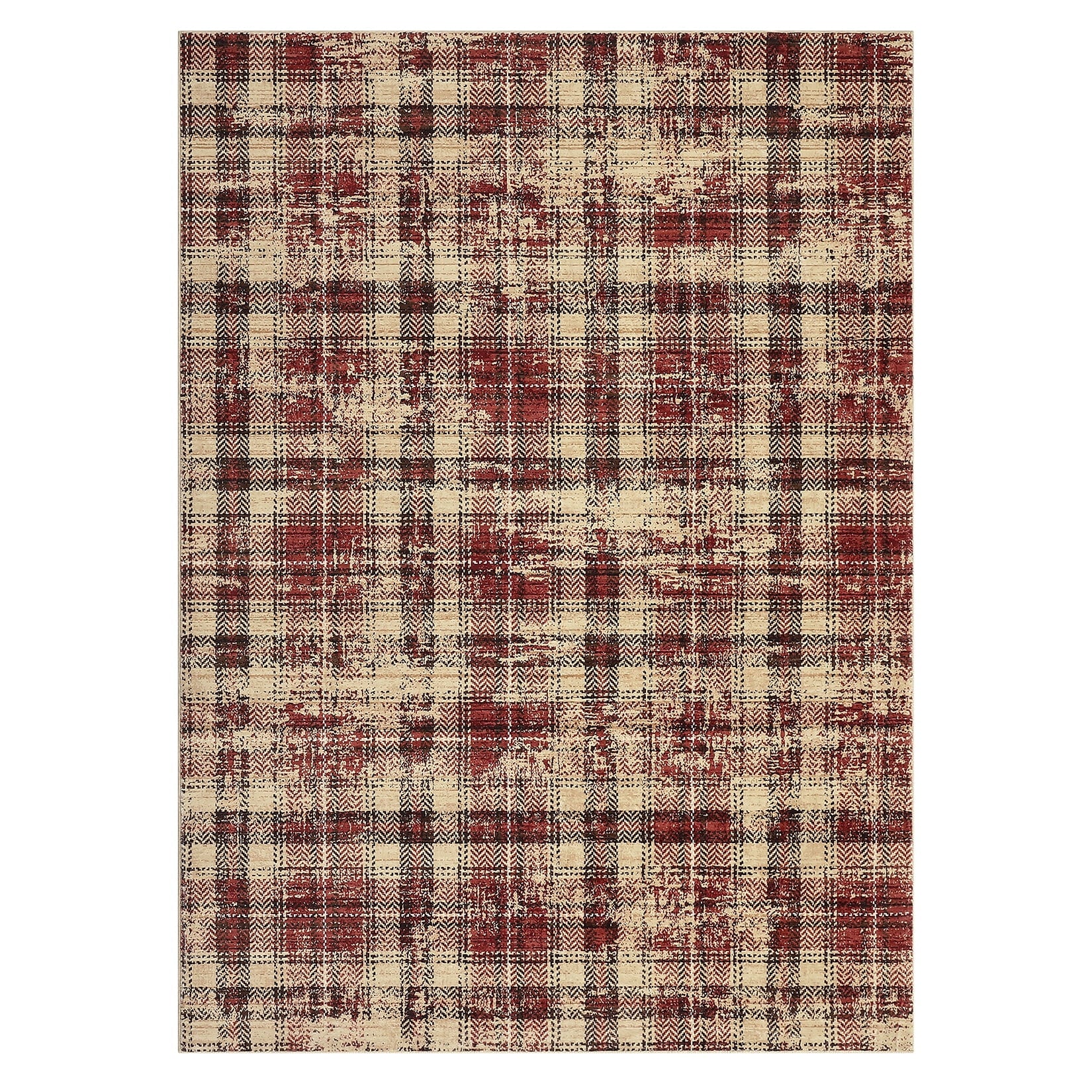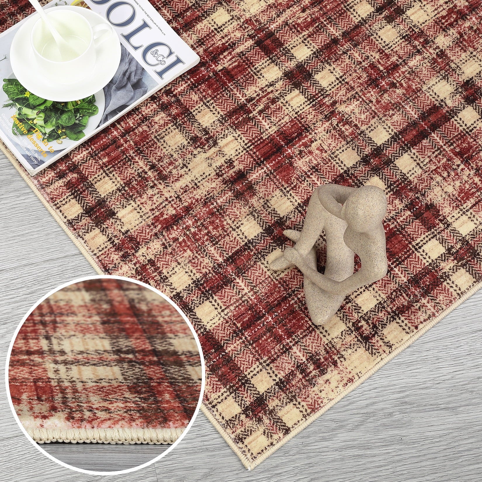 Haperlare Modern Area Rugs for Living Room Tartan Plaid Area Rug Luxurious Soft Bedroom Decor Rug Farmhouse Non Slip Throw Rugs, 5' x 7' Red