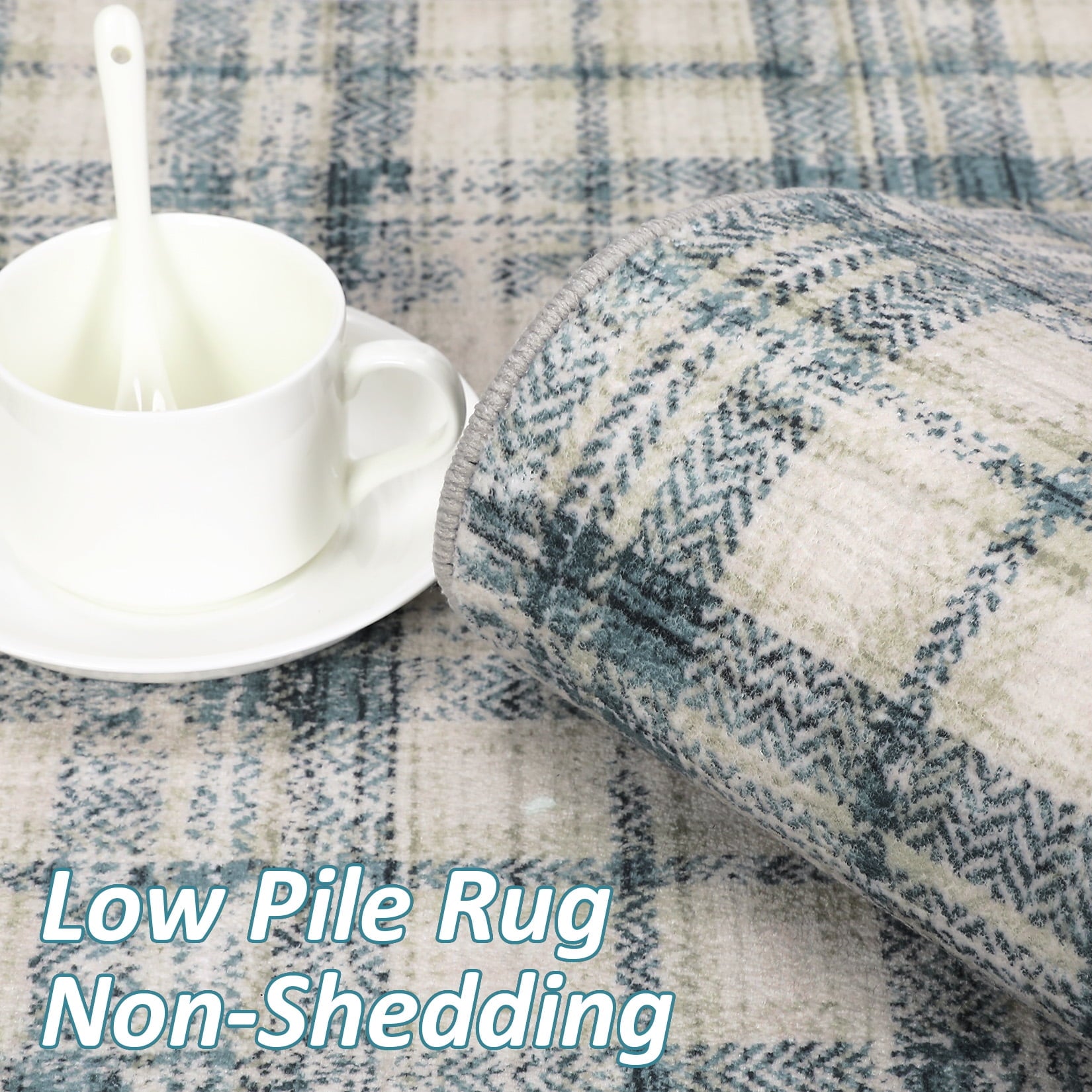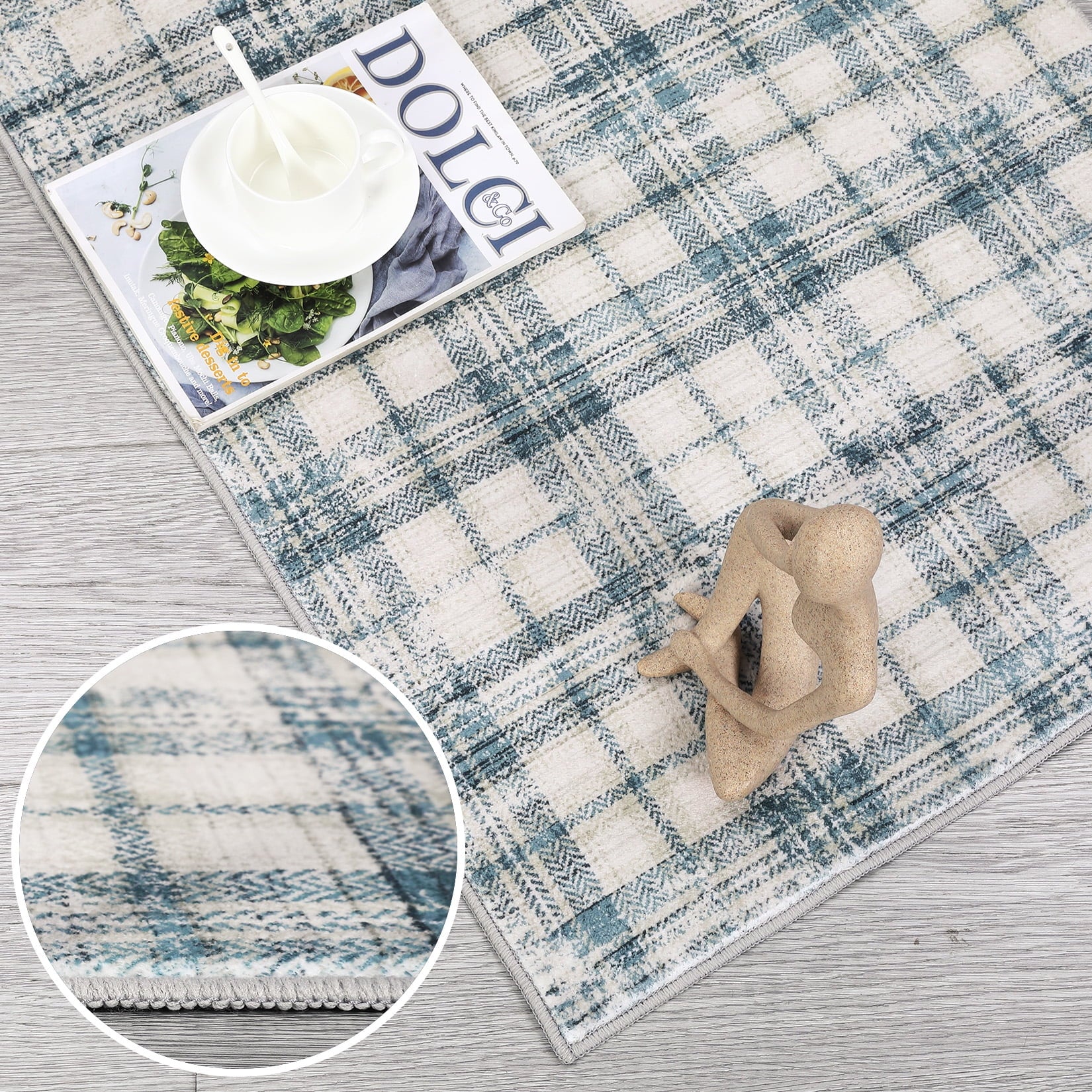Haperlare Modern Area Rugs for Living Room Tartan Plaid Area Rug Luxurious Soft Bedroom Decor Rug Farmhouse Non Slip Throw Rugs, 8' x 10' Blue Beige