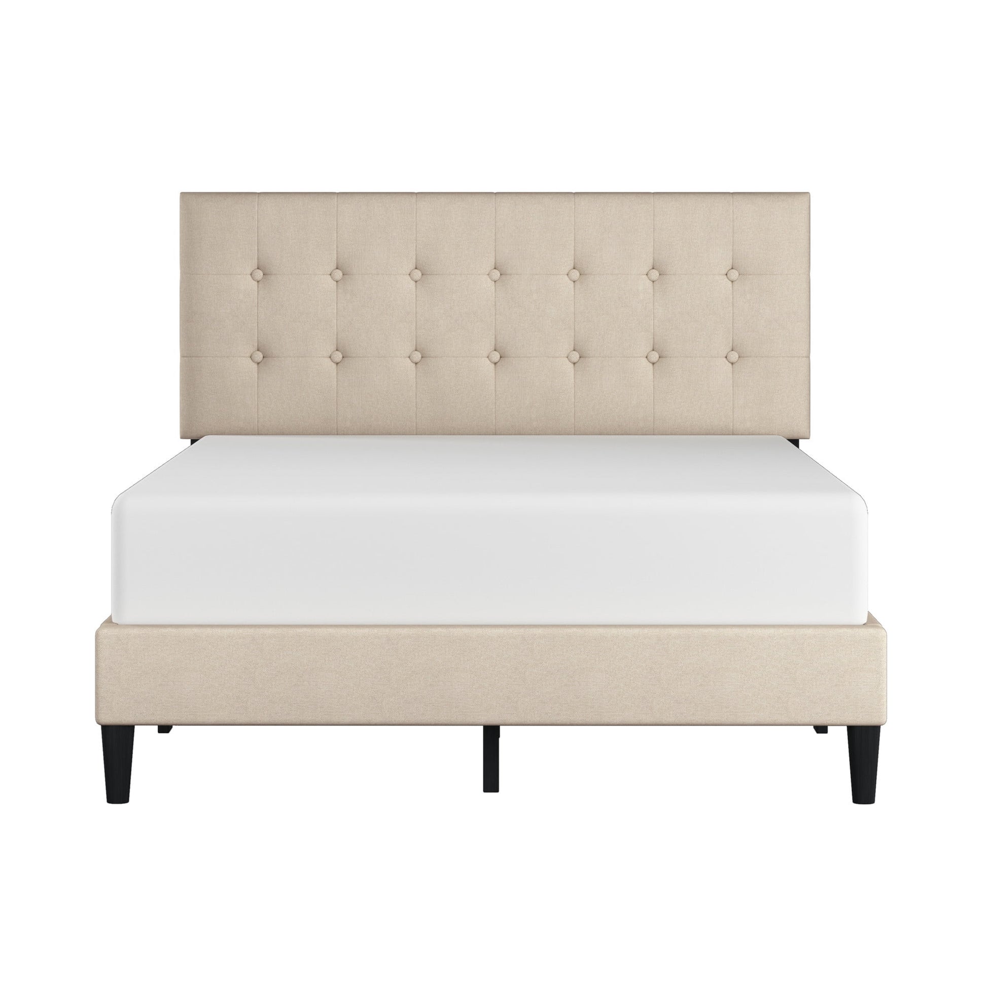 Hendrix Button Tufted Upholstered Full Platform Bed, Beige, by Hillsdale Living Essentials