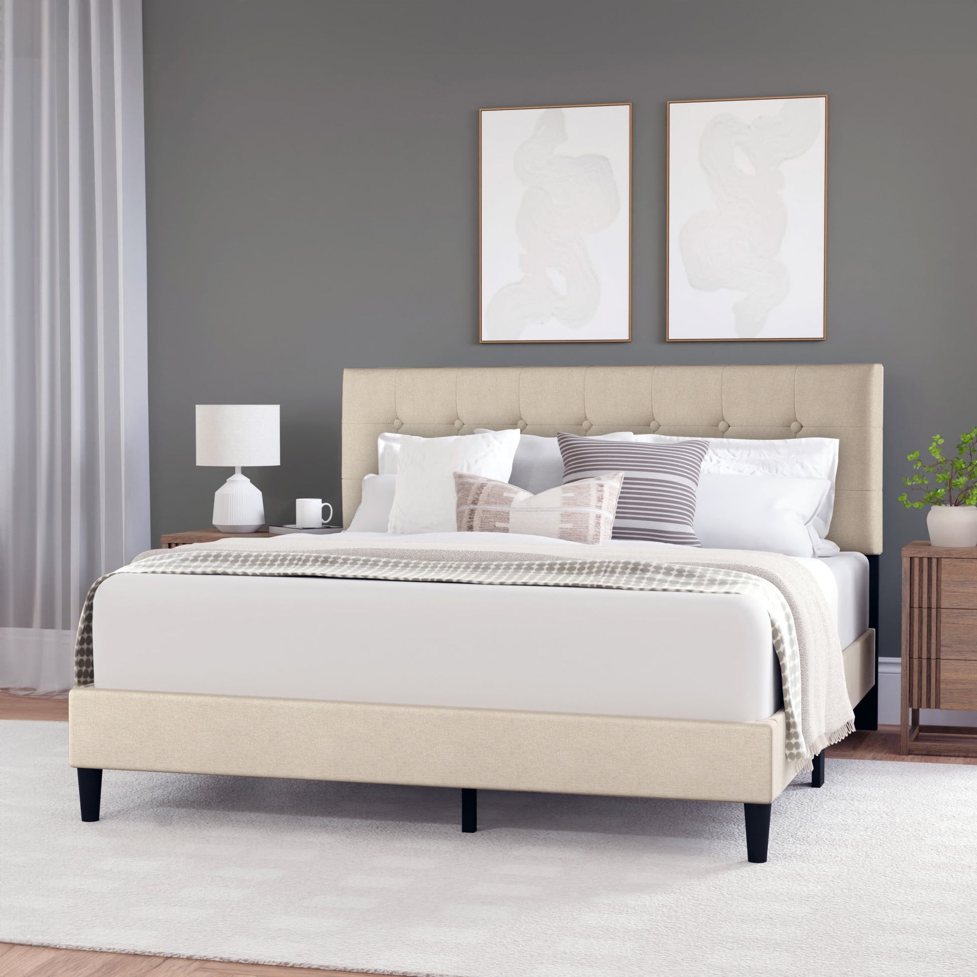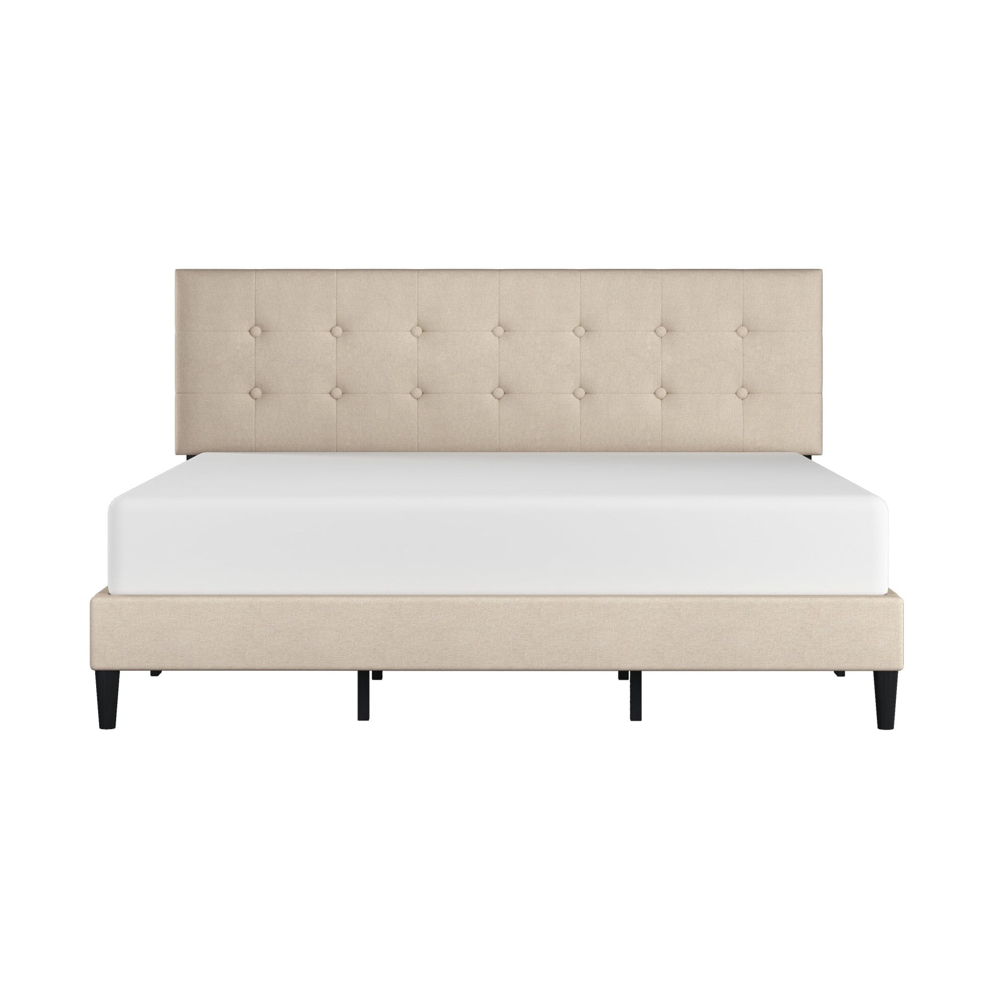 Hendrix Button Tufted Upholstered King Platform Bed, Beige, by Hillsdale Living Essentials