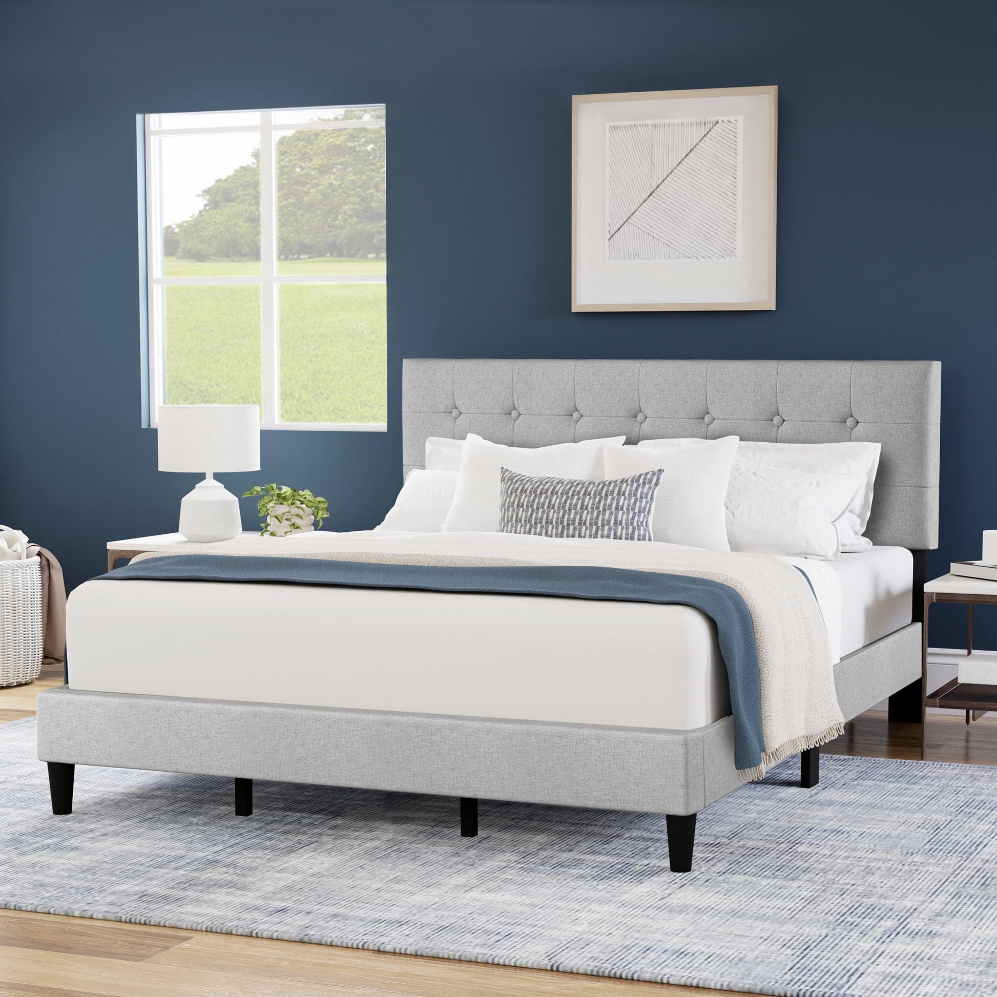 Hendrix Button Tufted Upholstered King Platform Bed, Light Gray, by Hillsdale Living Essentials