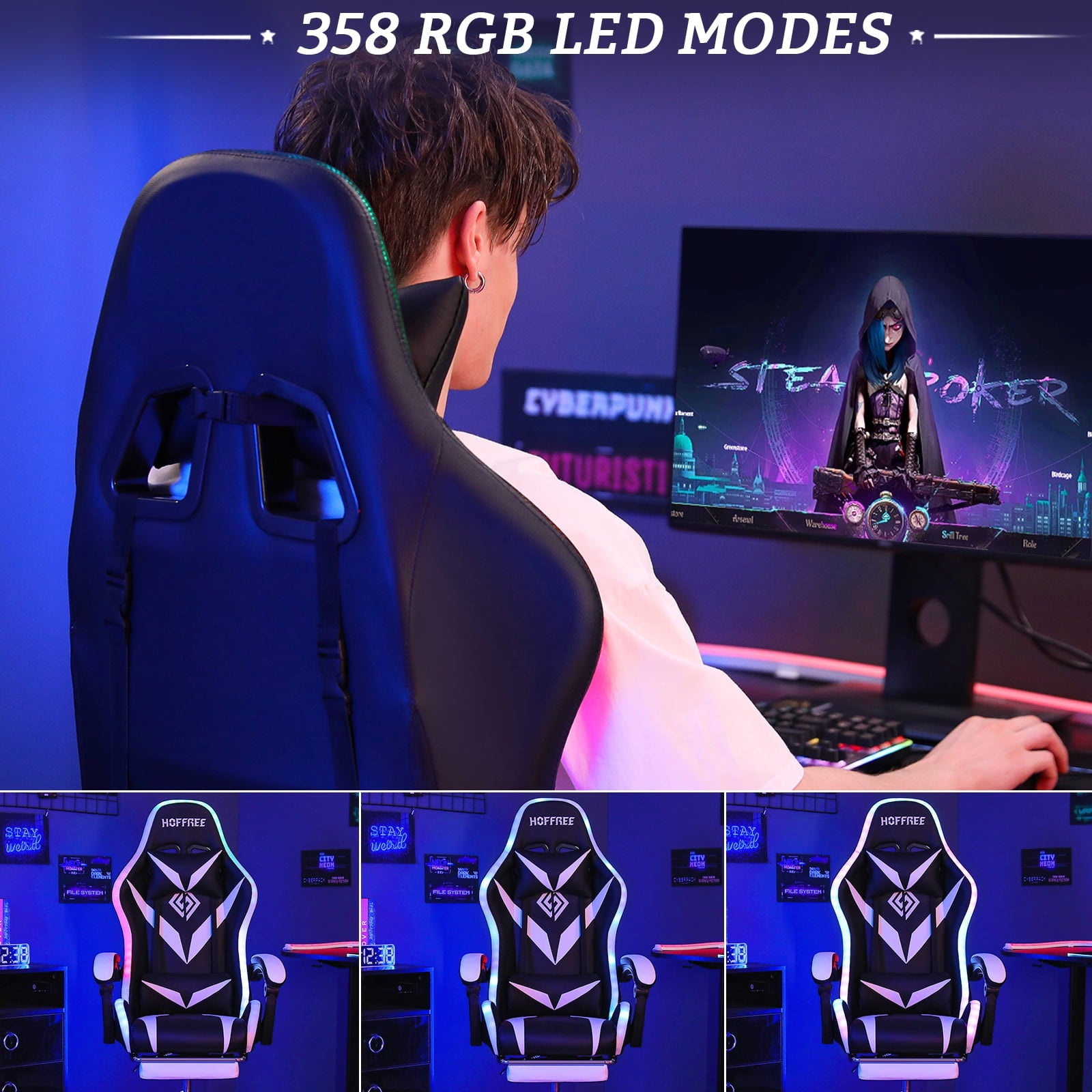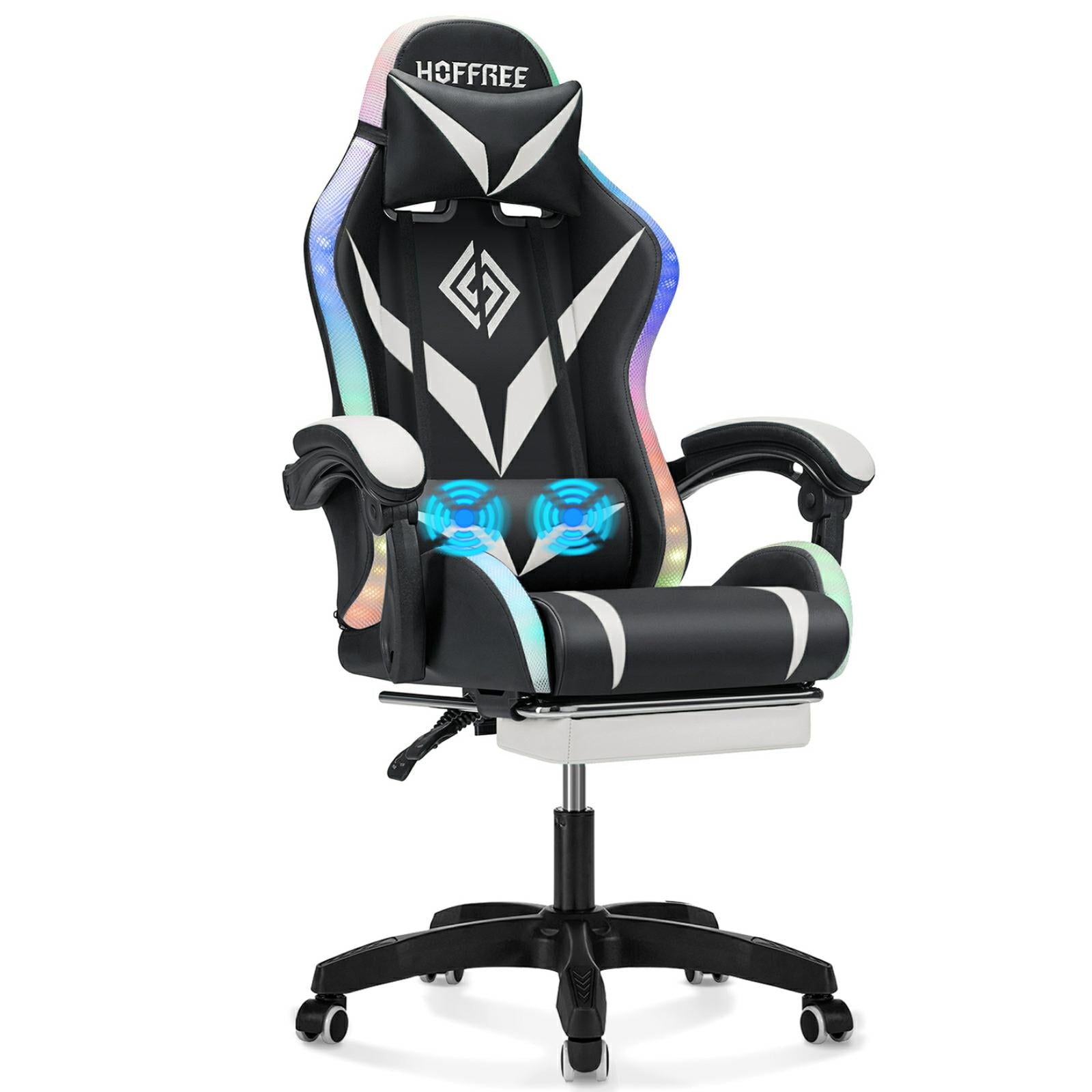 HOFFREE Gaming Chair with Massage and LED RGB Lights Ergonomic Computer Chair with Footrest High Back Video Game Chair with Adjustable Lumbar Support Linkage Armrest for Home Office