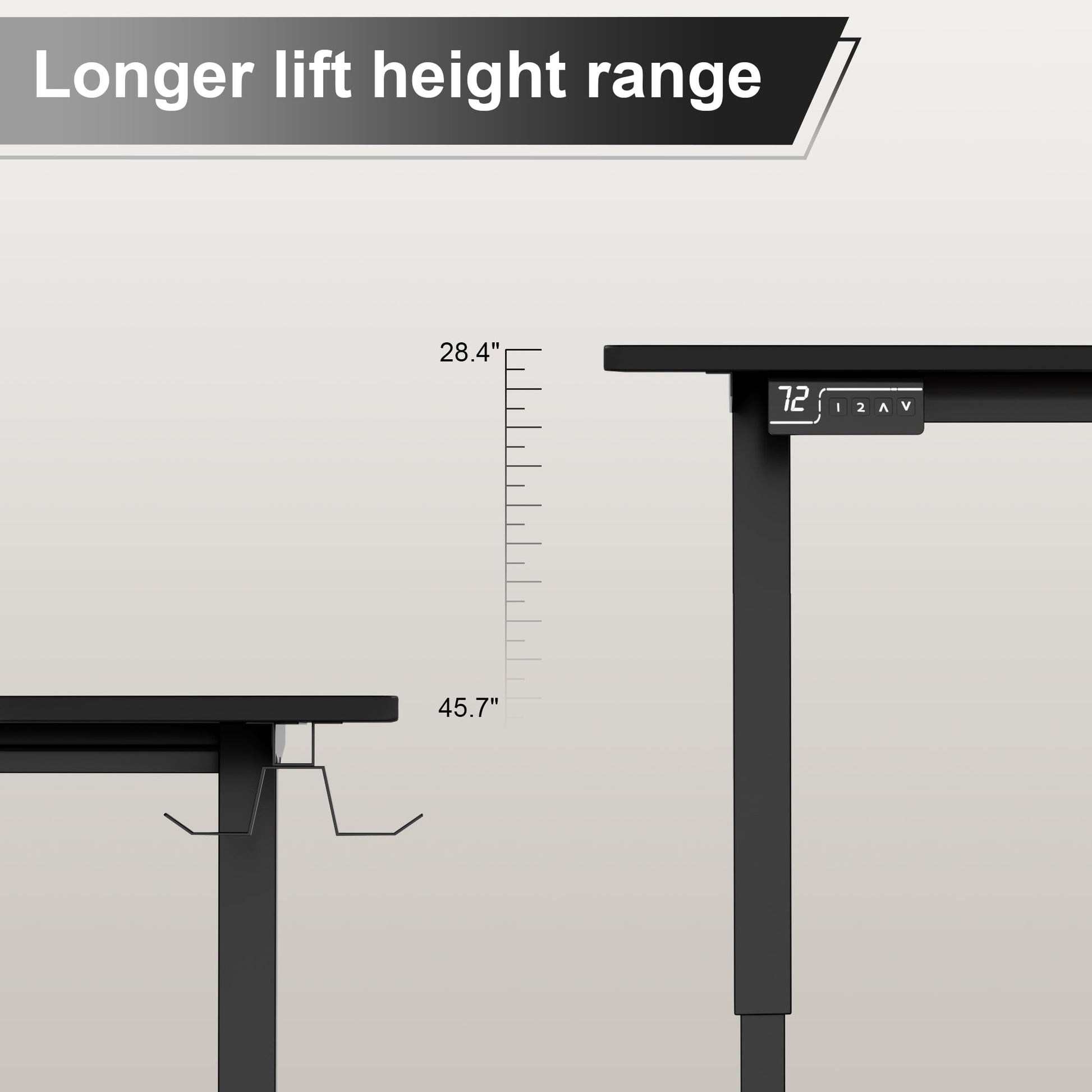Homall 63in Wide L-shaped Electric Sit-Stand Desk Lifting Range 28~46in Height Gear Memory Ergonomics Standing Desk Height Adjustable Computer Desk, Black
