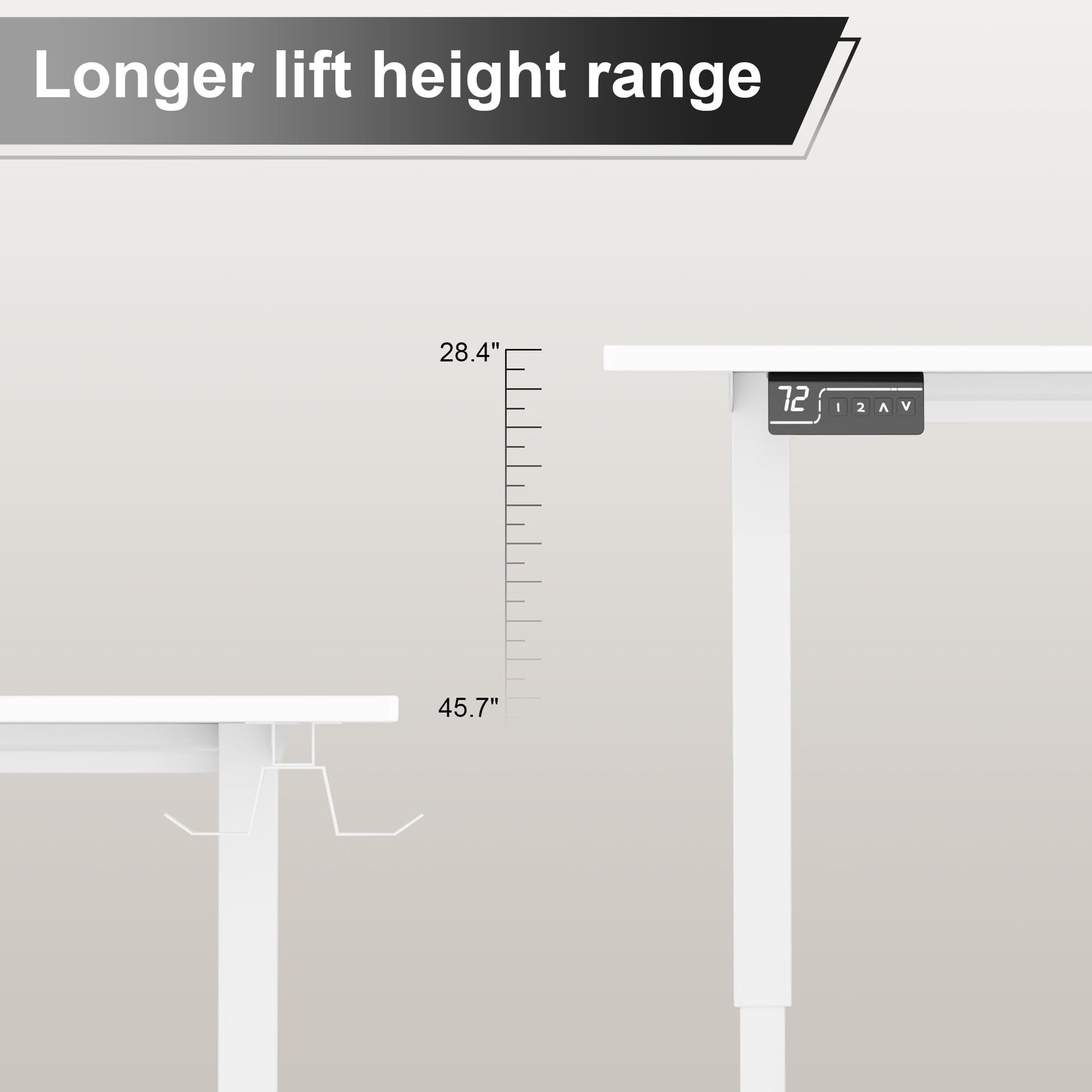Homall 63in Wide L-shaped Electric Sit-Stand Desk Lifting Range 28~46in Height Gear Memory Ergonomics Standing Desk Height Adjustable Computer Desk, White
